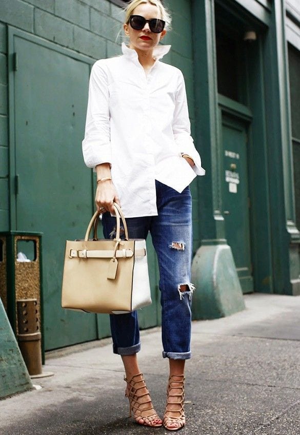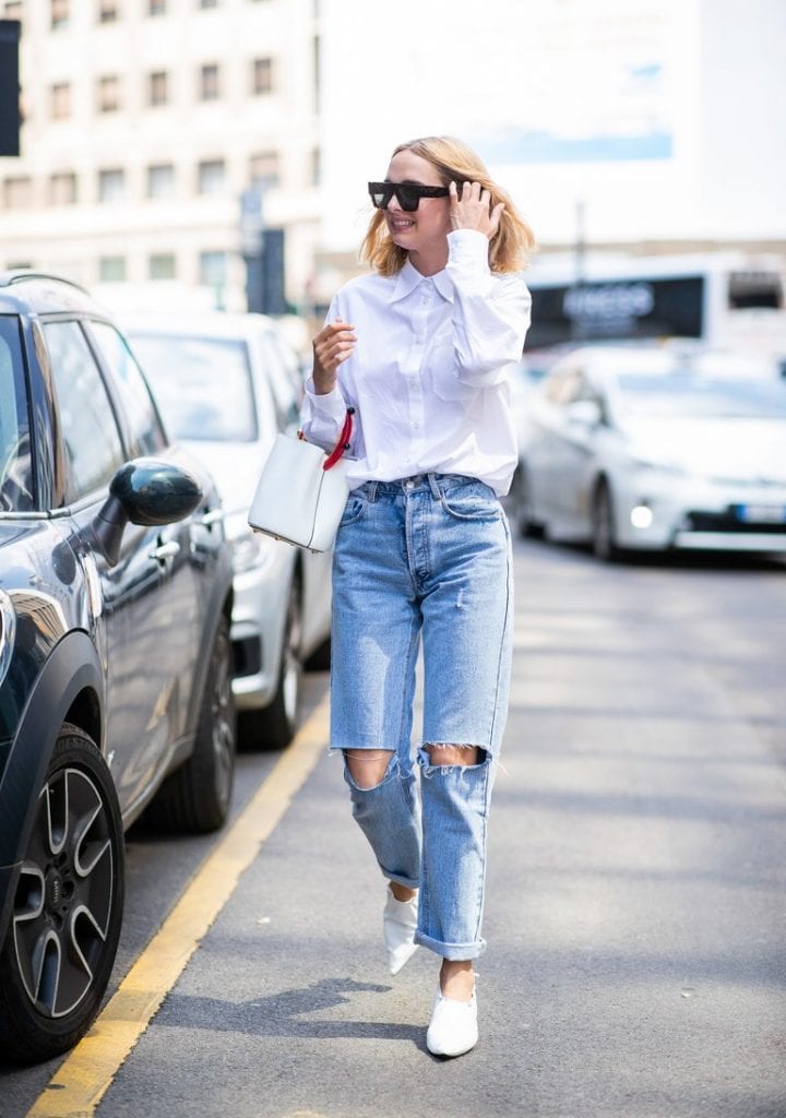 Sí de clásicos atemporales se trata la dupla de camisa blanca y blue jeans es una de las pioneras. Simple, casual, pero sofisticado a la vez, este es el outfit “comodín” para cualquier ocasión; desde viernes casuales en la oficina para aquellas que trabajan en rubros más formales o corporativos o para un almuerzo el fin de semana con amigos.