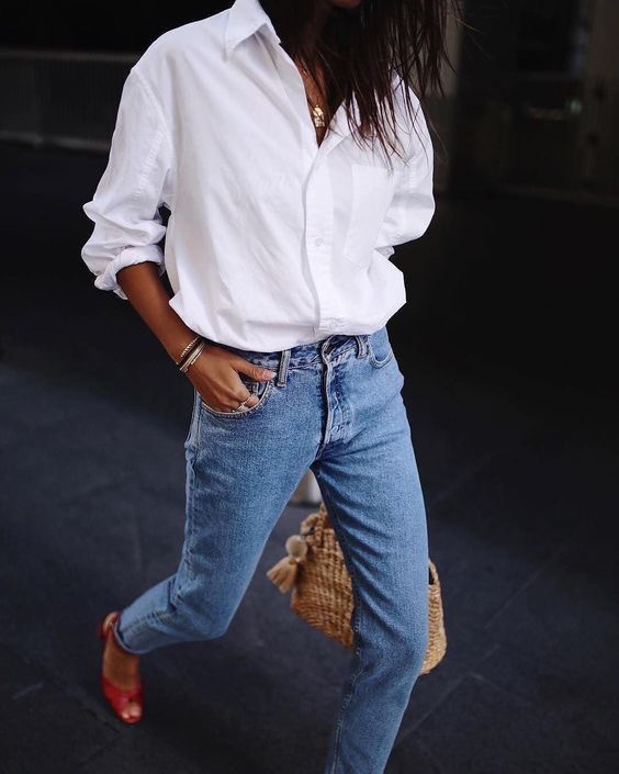 Clásica camisa blanca: Y cuando hablo de clásica me refiero a aquella de algodón con botones. No es necesario que uses modelos muy ajustados, se ve mucho más trendy una camisa más holgada. De hecho yo compro las mias en modelos para hombre en Nautica talla S.