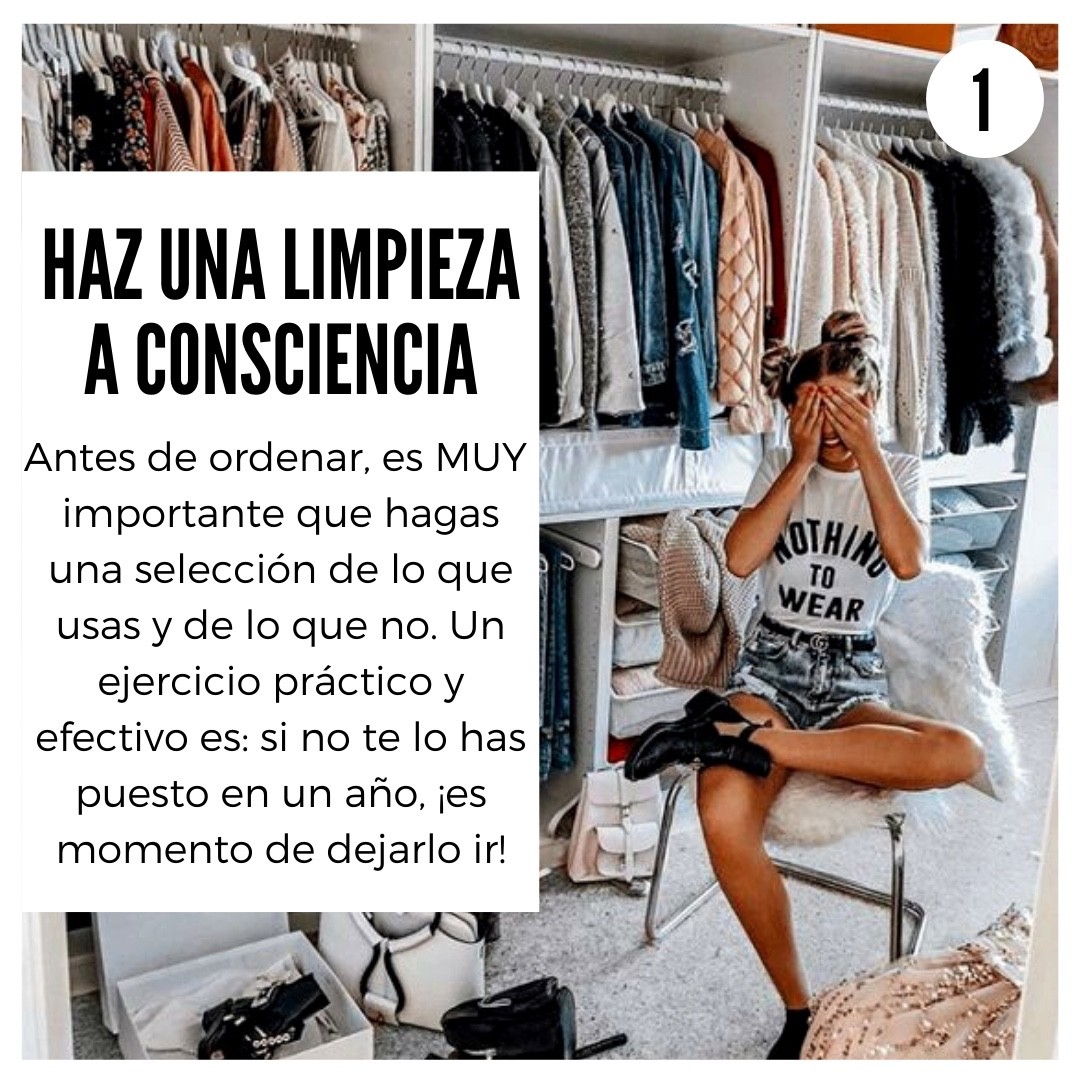 Recuerda que la clave es “hacer limpieza”. Esto quiere decir que no se trata sólo clasificar u ordenar, sino también seleccionar y dejar aquellas prendas que realmente te gusten y sobre todo que te hagan sentir bien.