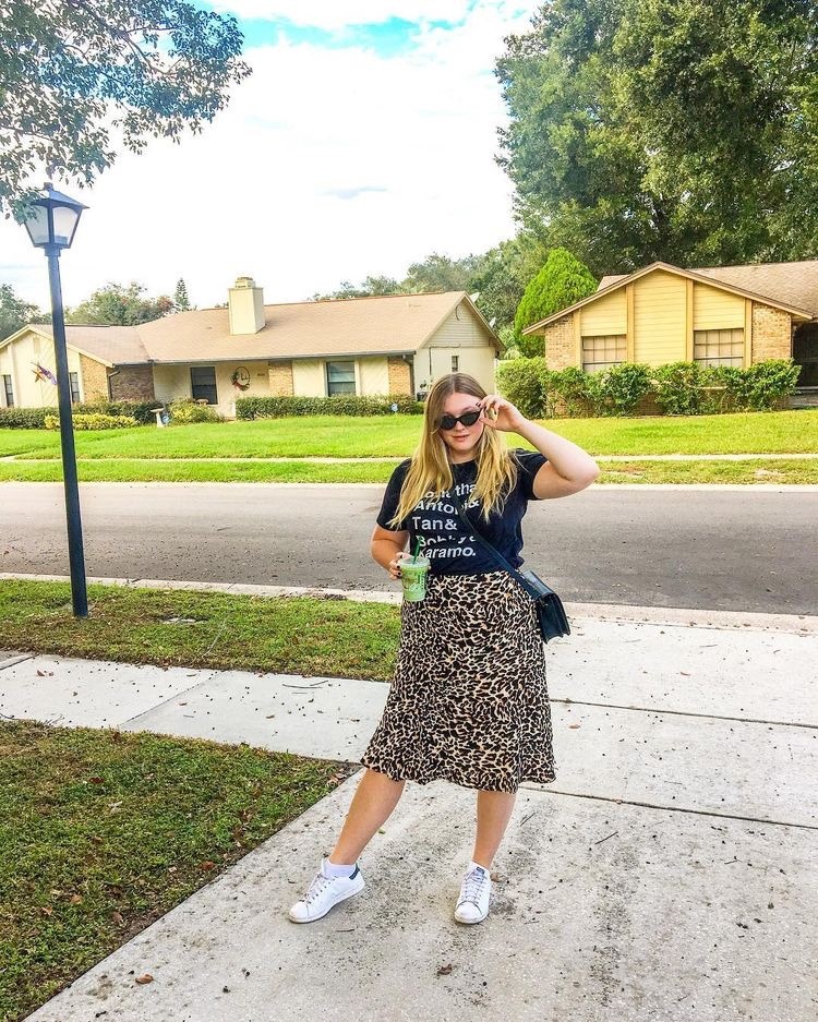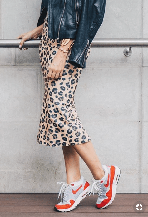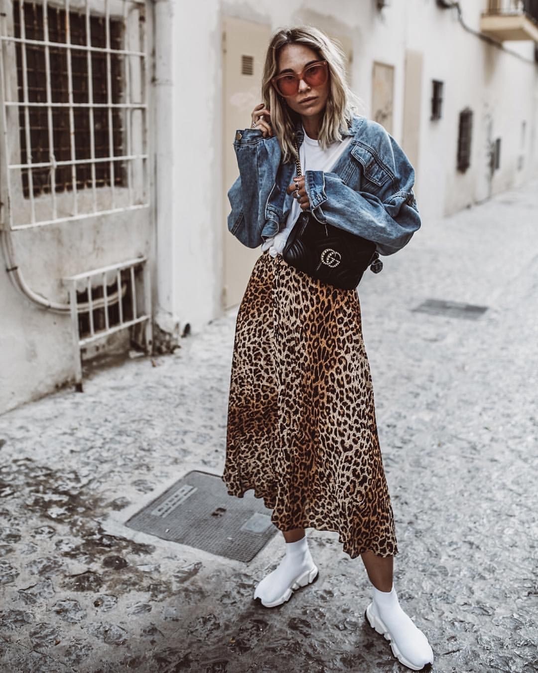Uno de los look más “trendy” con la falda animal print, es combinarla con unas zapatillas estilo chunky. Sin duda un look full tendencia.