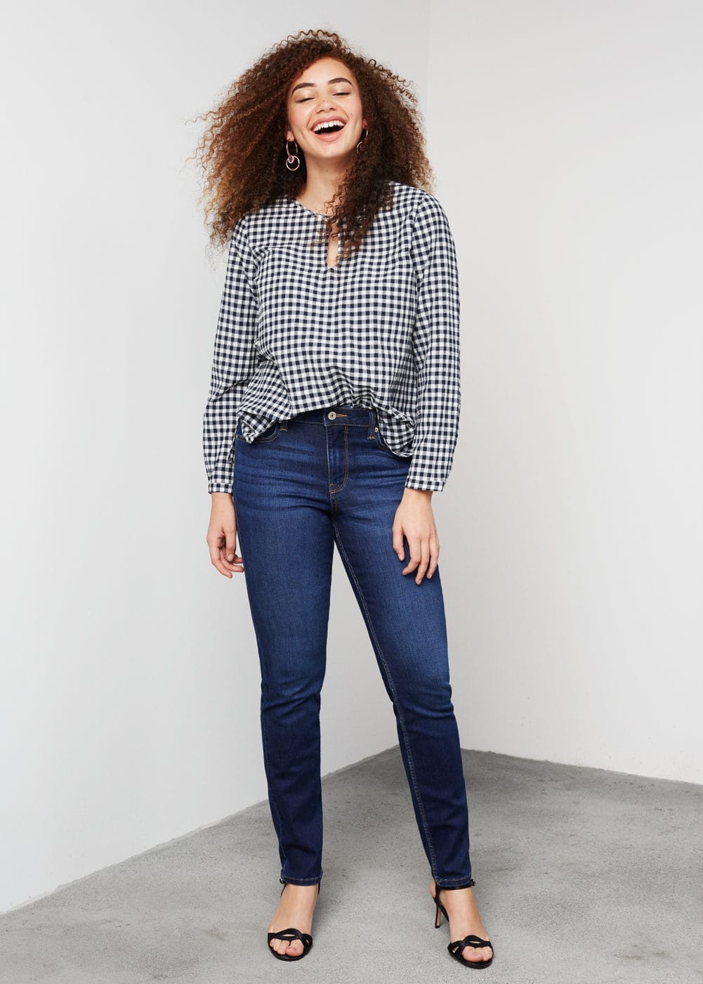 7. Tiro alto en los jeans. Reemplaza tus jeans a la cadera y busca aquellos que lleguen justo a tu ombligo o sobre éste. Busca modelos en marcas más curvy que hacen que la cola se vea muy linda y compacta. Hay una marca estadounidense que se llama “Good American” que aseguran tener el mejor calce de todos y hacen envios a Chile.