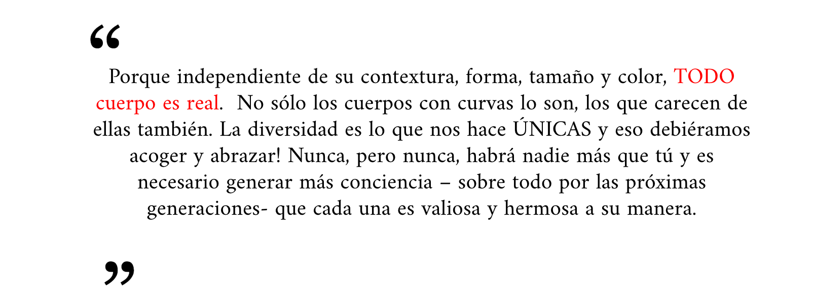 Tu cuerpo es lo único tuyo que tendrás y lo único que te acompañará por el resto de tu vida. No lo compares. Quiérelo, cuídalo y poténcialo.