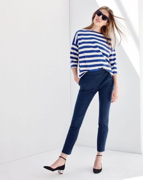 A través de las décadas, la camiseta marinera ha demostrado que es capaz de mantenerse de absoluta tendencia, favorecer a las mujeres que la portan y adaptarse a todo tipo de corrientes estéticas. Bien es cierto que con el paso del tiempo se ha ido desvinculando del contexto marino para abrazar todo tipo de estilos, incluidos los más sofisticados y selectos. Sus características rayas horizontales han pasado de representar una prenda casual a ser un must de todo armario que junto a tacones y un jeans desgastado entregan un resultado súper chic!
