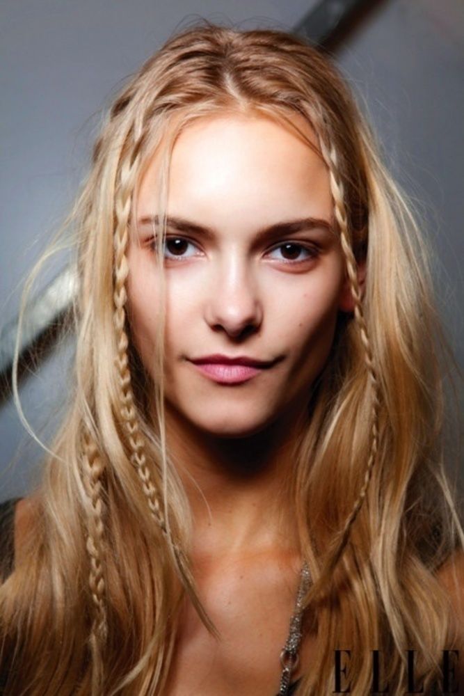Si no eres muy hábil para los peinados, ¡entonces este look es para ti! Todo lo que tienes que hacer es trenzar los dos mechones que enmarcan el rostro, con una trenzas finas, que puedes dejar sueltas o bien ajustadas.