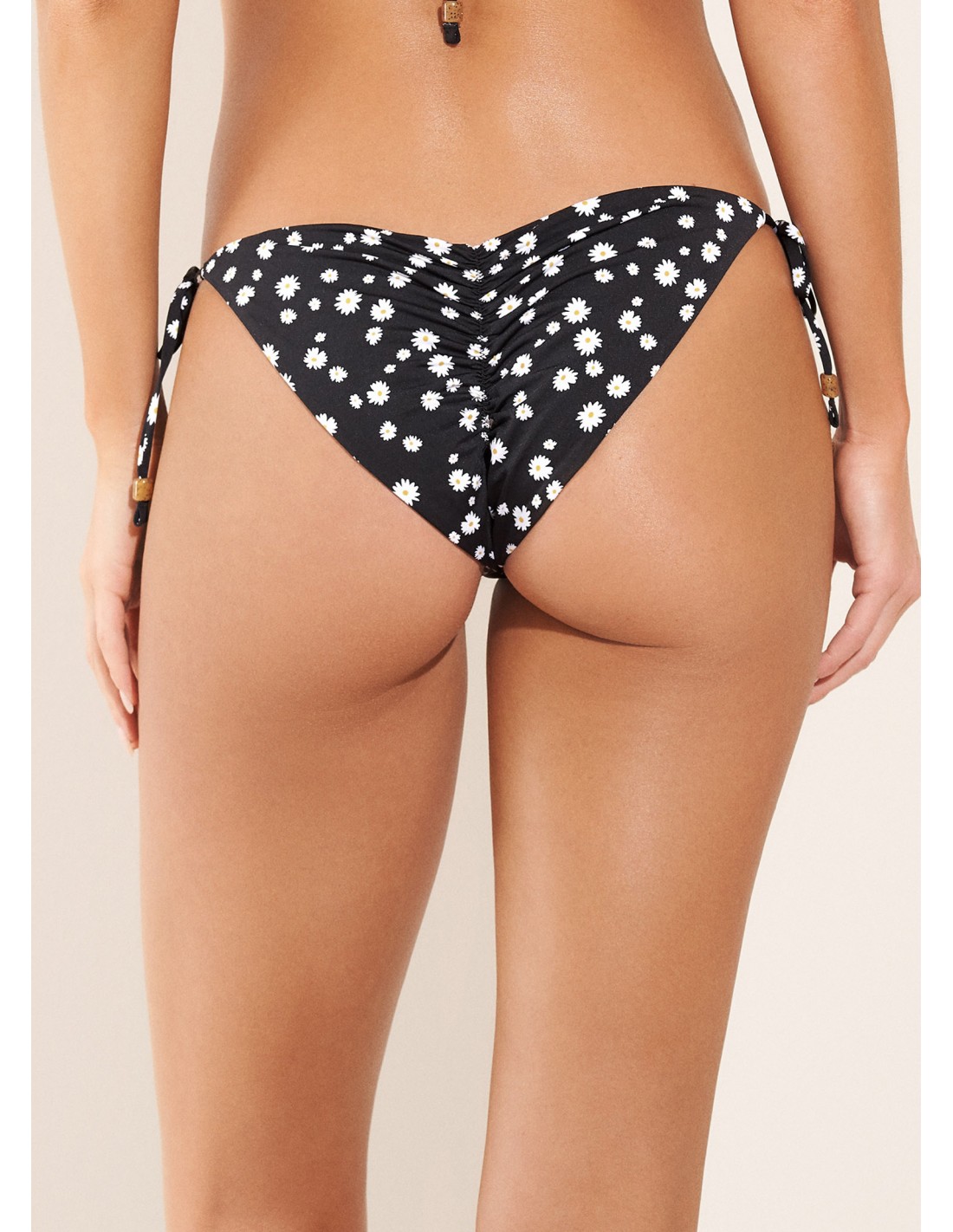 La parte de abajo también es uno de sus importantes puntos a favor. Lleva amarras laterales para ajustarlas cómodamente a tu silueta, y subirlas o bajarlas para no broncearte con la marca del bikini. Pero lo que más nos ha gustado, es el recogido que lleva en la cola, una sutil costura que genera un favorecedor efecto visual que realza y levanta la cola.