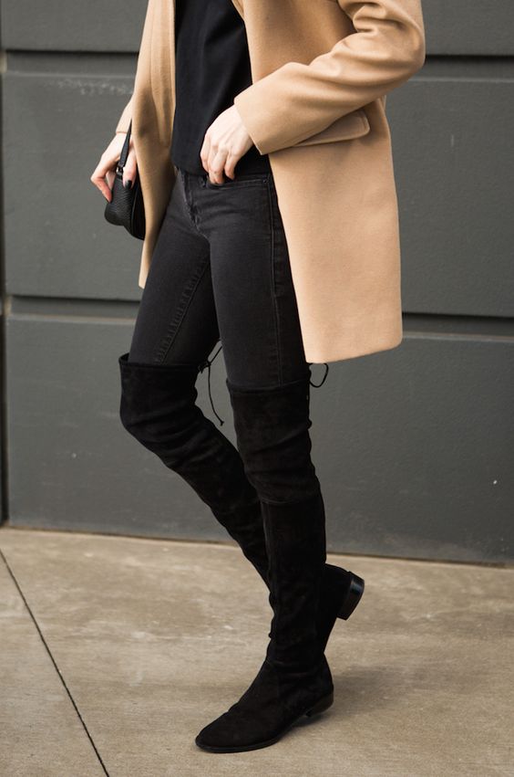 Deja que las botas sobre la rodilla sean las grandes protagonistas del look, llevándolas con piezas clásicas y discretas, y preferentemente en colores neutros.