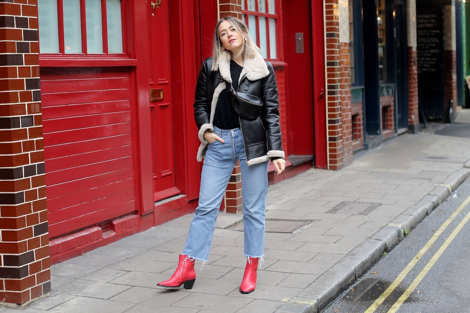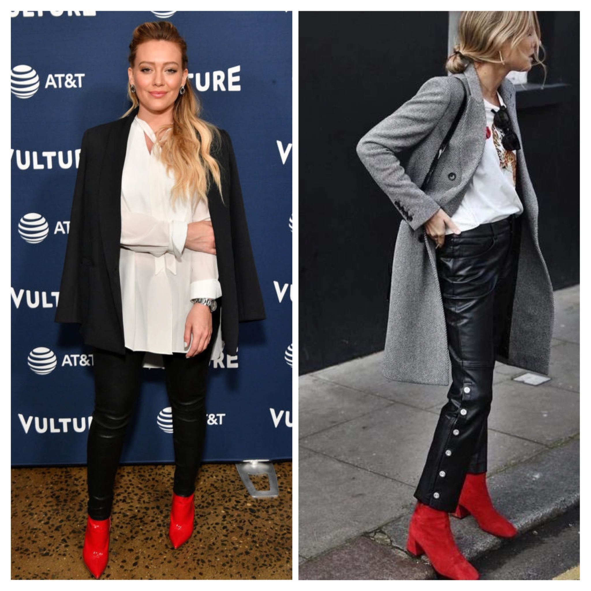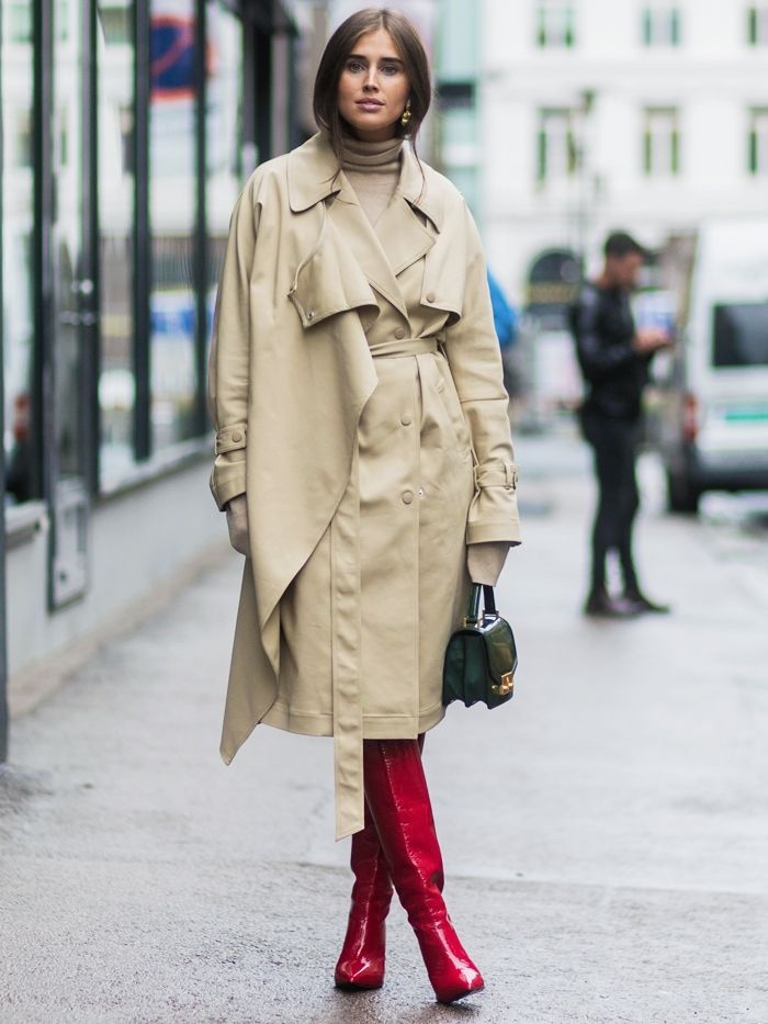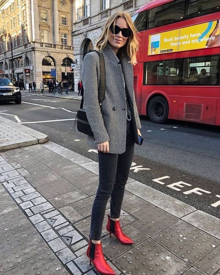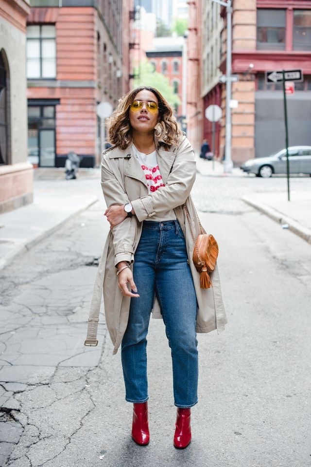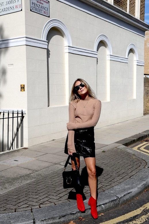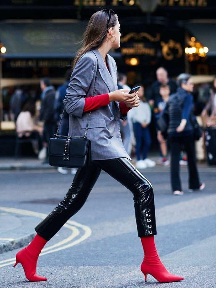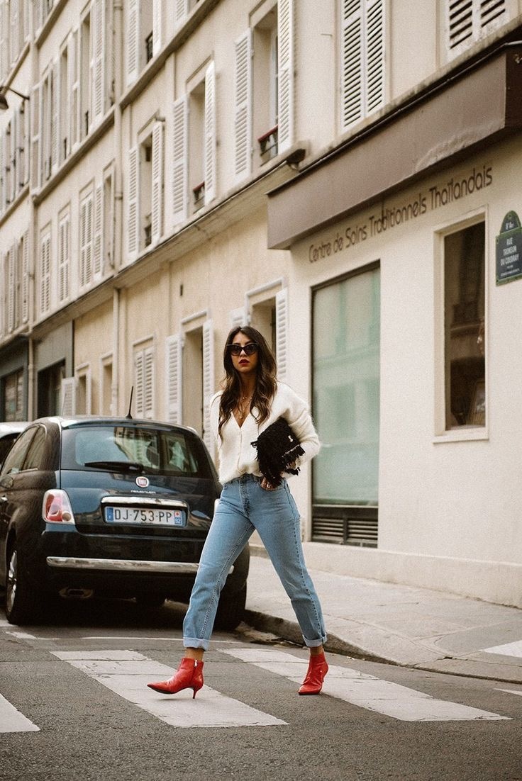 Aquí cada pieza es full tendencia y los botines rojos vienen a “coronar” el outfit.