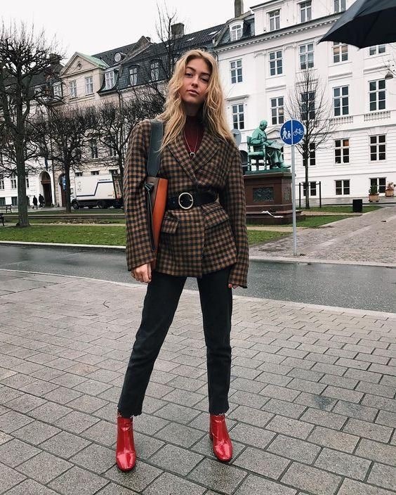 Un look que sin duda es un total acierto es un blazer a cuadros “estilo príncipe de Gales” junto a una camiseta rockera y unos jeans a la cintura.