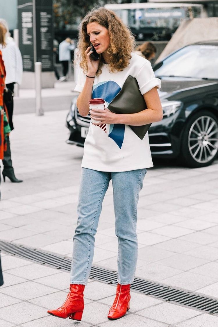 Los botines rojos van con todo. Sí, no hay color que se le resista, desde el fucsia hasta el gris y en especial con jeans y estampados para las más atrevidas.