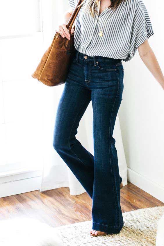 Evita llevar pantalones muy pegados, con bolsillos abultados y de cintura baja que marcarán más tus caderas. El mejor corte de pantalón son los que se acomodan bien en tu cintura y son rectos o “bootcut” hasta el suelo sin ningún tipo de diseño. Los jeans cuanto más oscuros mejor. Me encantan los Levi’s® Womens 715™ Bootcut.