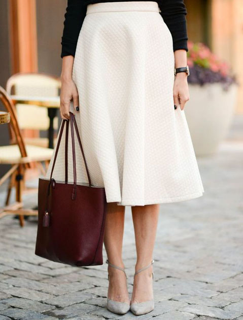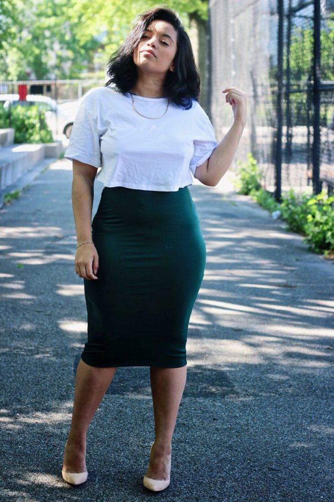 Busca faldas rectas o tipo A o vestidos corte imperio que terminen por encima de tus rodillas. Si quieres lograr un look “curvy” y ultra sexy una falda ajustada corte lápiz bajo la rodilla te dará ese estilo seductor muy “Kim Kardashian”. Aquí tus caderas serán las protagonistas.