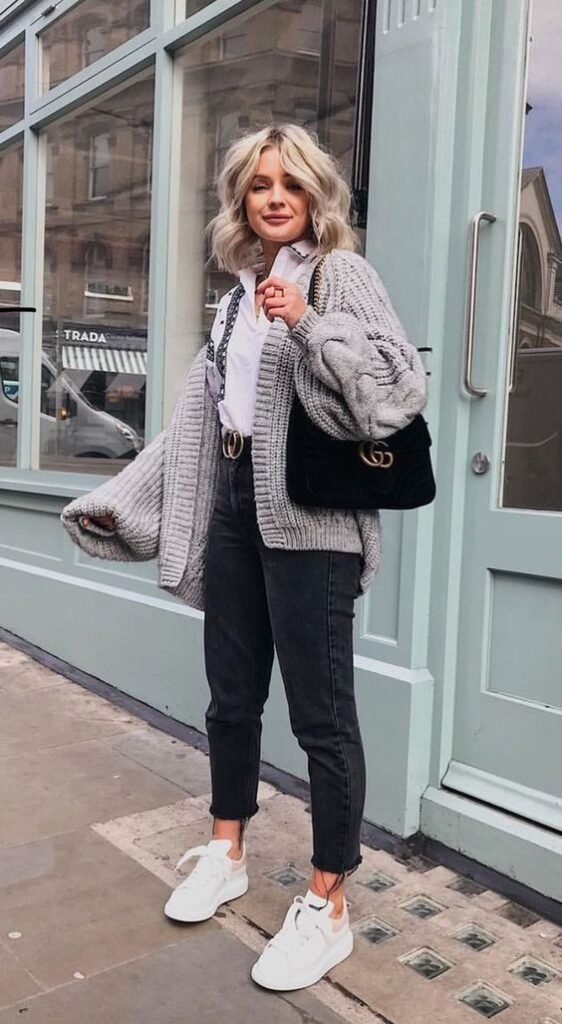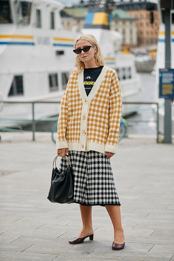 Como heredado de nuestros abuelos, el cárdigan oversize y con estampado de rombos o tejido trenzado será una de las piezas más comfy de clóset otoñal. Perfecto para aportar una nota más cálida al look.
