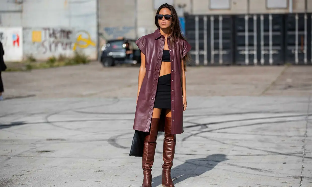¿Qué te parece esta versión del chaleco largo sin mangas de cuero? ¡Un hit!