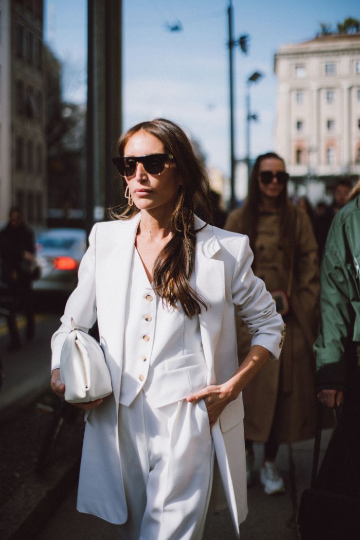 Para los días más cálidos, lleva tu chaleco sastre completamente cerrado y sin nada abajo, para lucirlo como si fuese un top. Quedará perfecto con unos jeans lisos, o un pantalón sastre que potencie ese aire masculino del gilet.