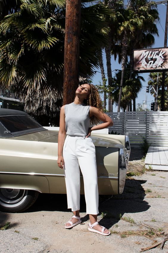 Las Chunky Sandalas en total white también son uno de los modelos favoritos de la temporada, sobre todo porque aportan luminosidad al look y generan un lindo contraste entre el blanco de la sandalia y el color natural de la piel.
