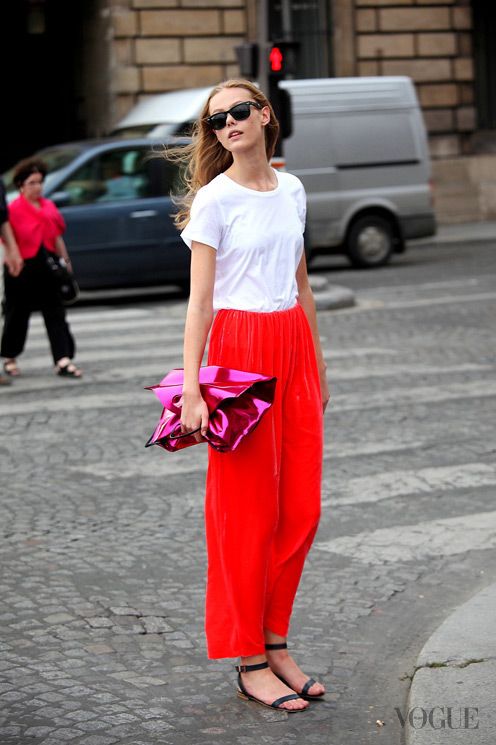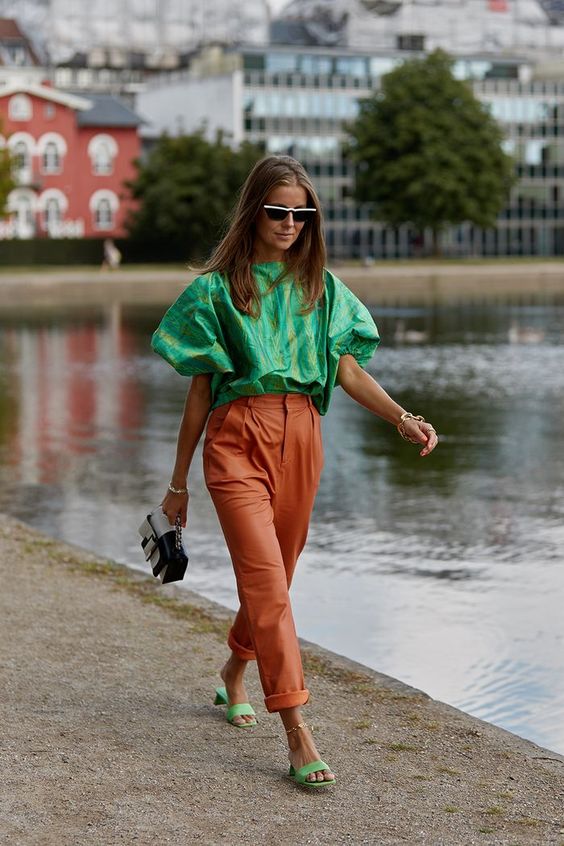 Debe ser uno de los colores menos usuales (¡y más temidos), pero que esta primavera se hace presente sobre todo en prendas libres de estampados.