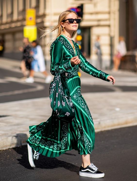 Los vestidos verdes son los reyes del street-style primaveral.