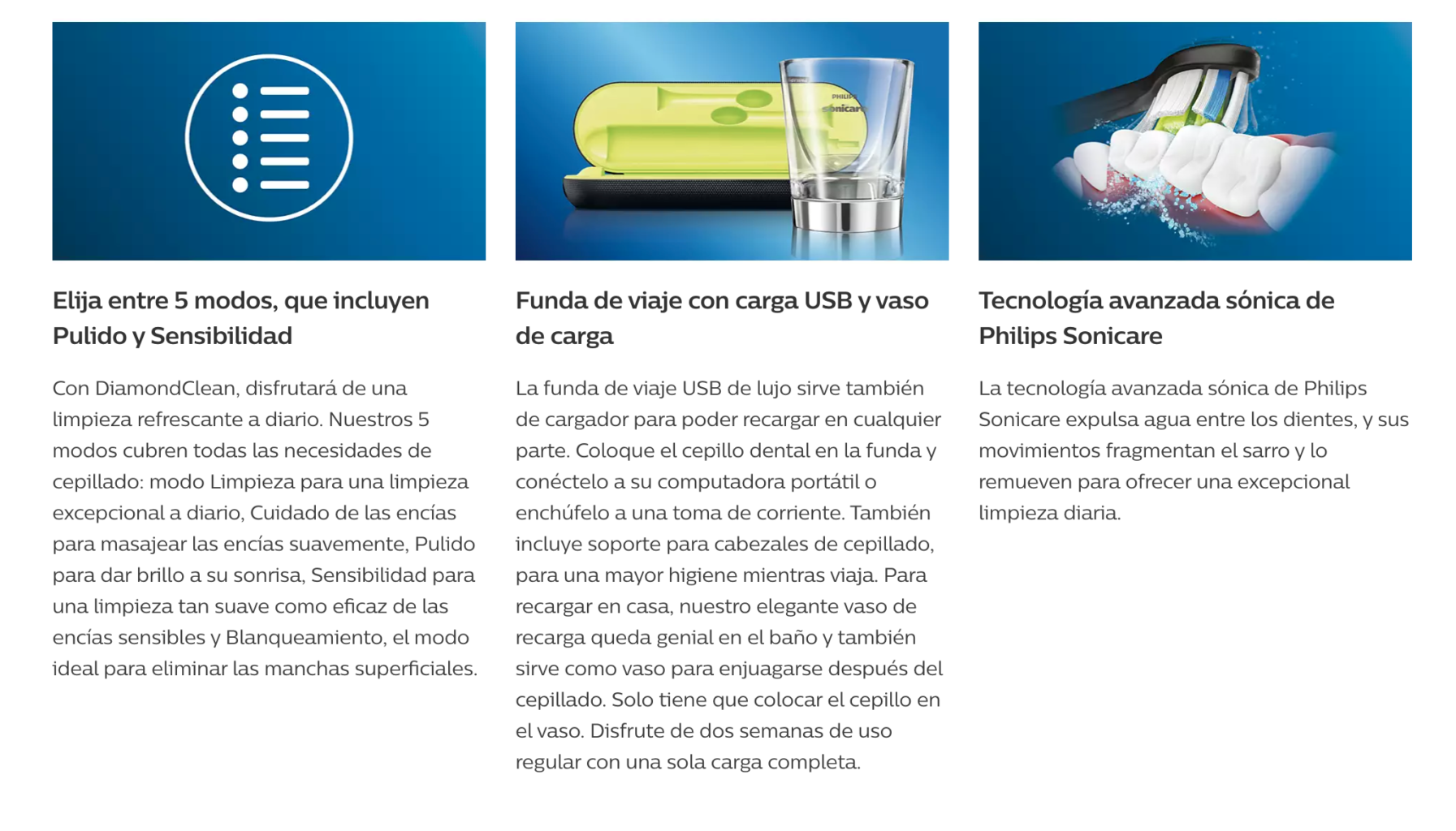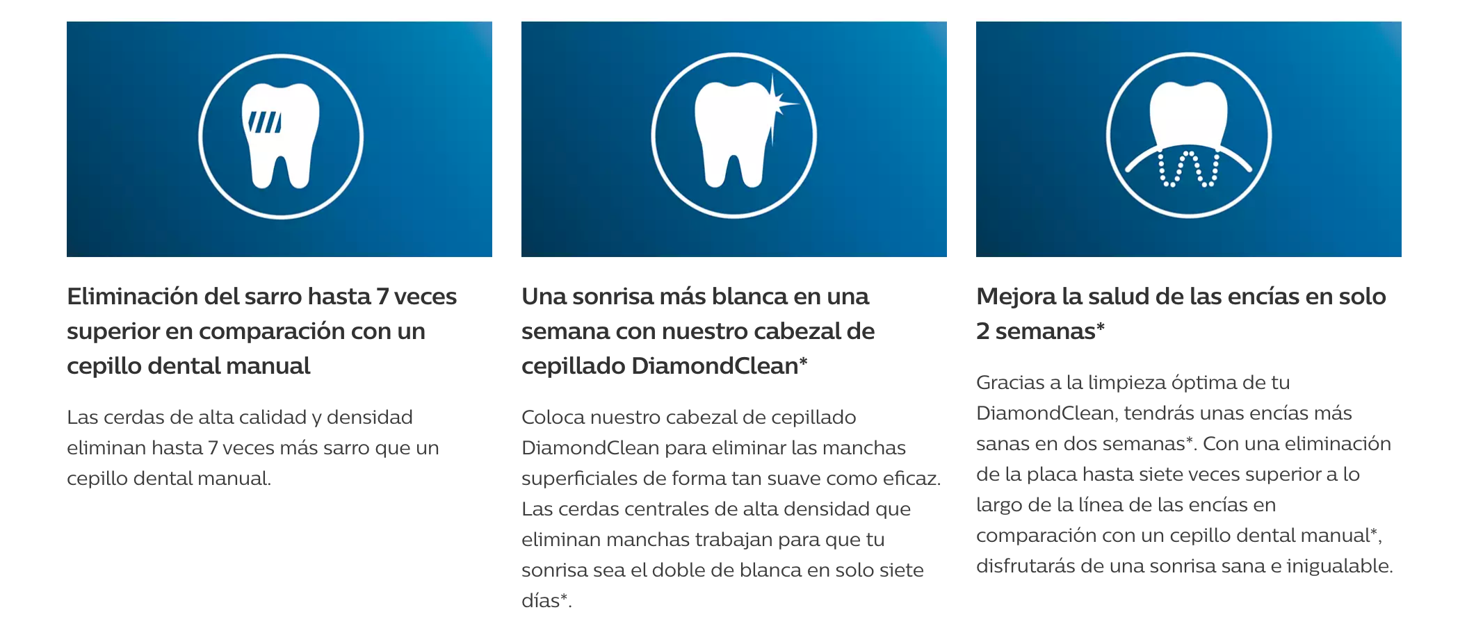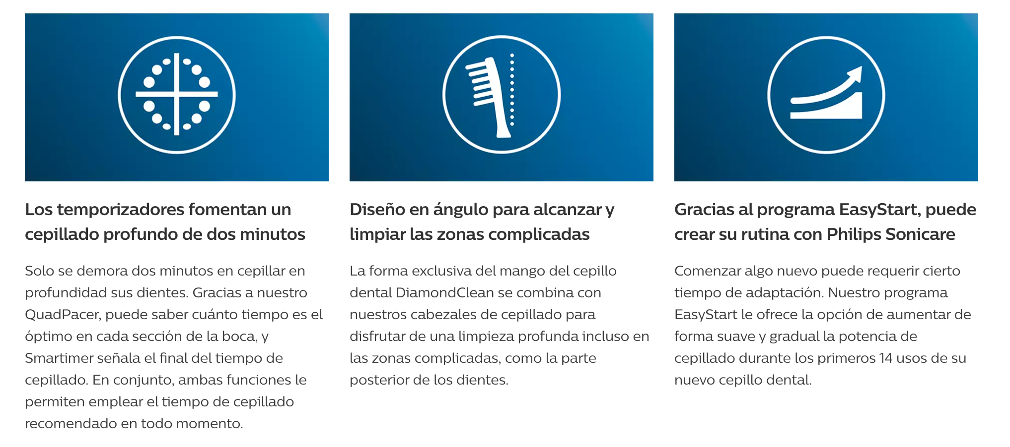 Sonicare como línea de cepillos dentales eléctricos sónicos funciona como su nombre lo dice, con vibraciones sónicas. Lo cual le permite llegar a lugares donde un cepillo convencional no llega.
