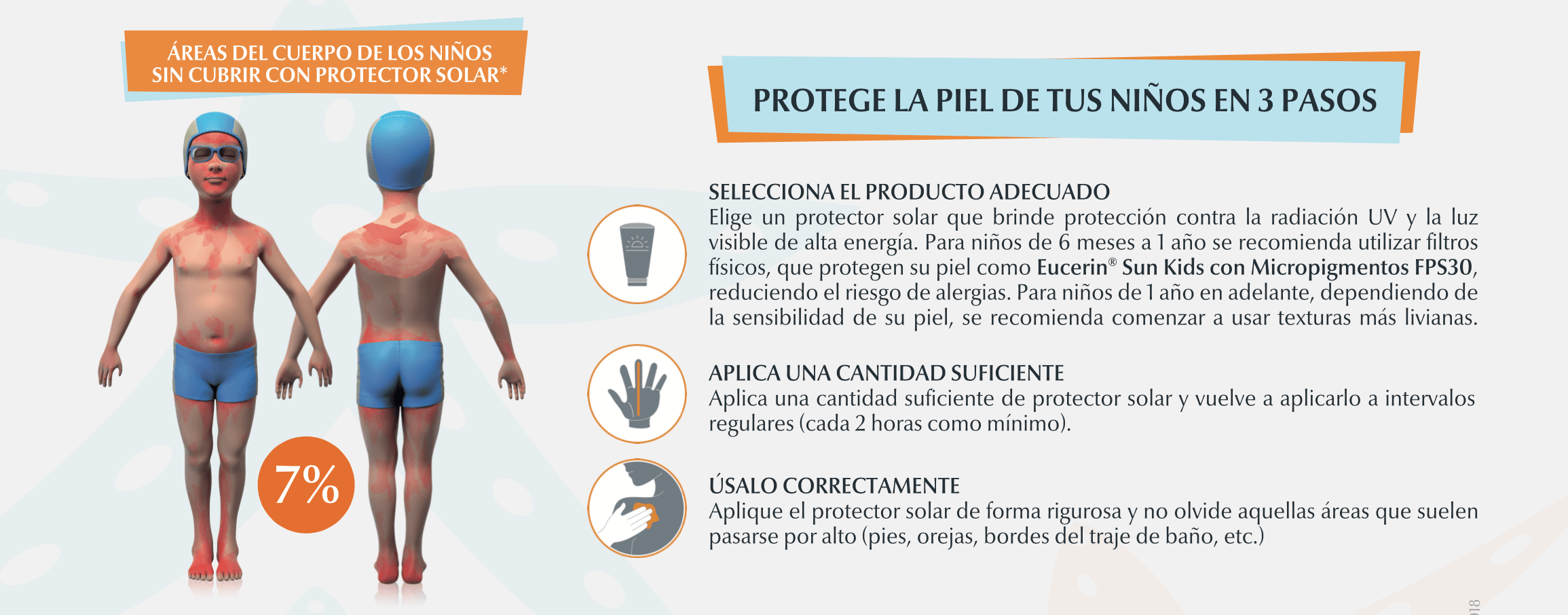 Teniendo en cuenta que el daño causado por los rayos UV y las quemaduras solares repetidos durante la infancia incrementan, según se ha demostrado, el riesgo de cáncer de piel en una etapa posterior de la vida, es primordial que la piel de los niños sea protegida adecuadamente.