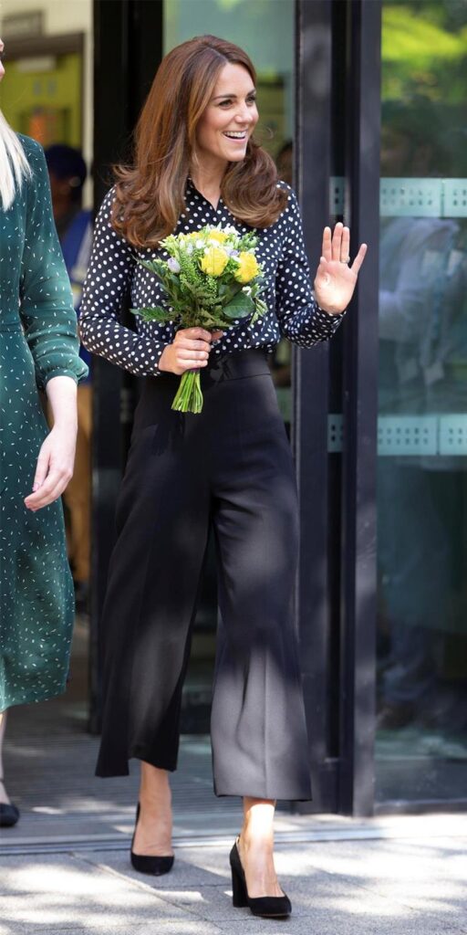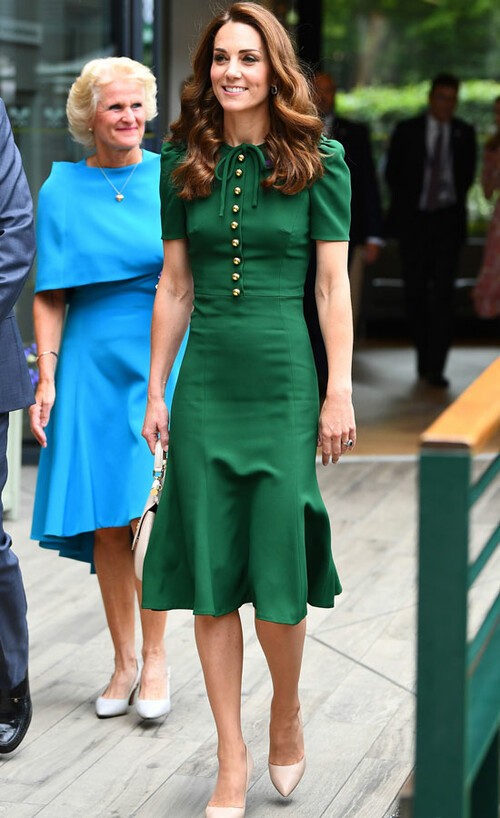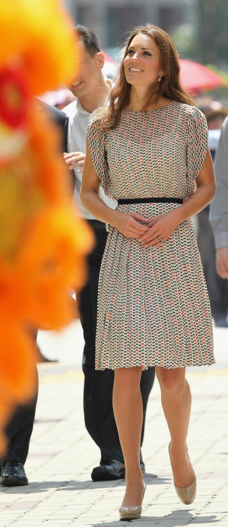 Kate Middleton suele escoger vestidos a la rodilla para sus apariciones en público siempre con tacones, especialmente en tonos nude. A su vez los estampados son uno de sus grandes aliados para darle un look más fresco y añadir su sello personal.