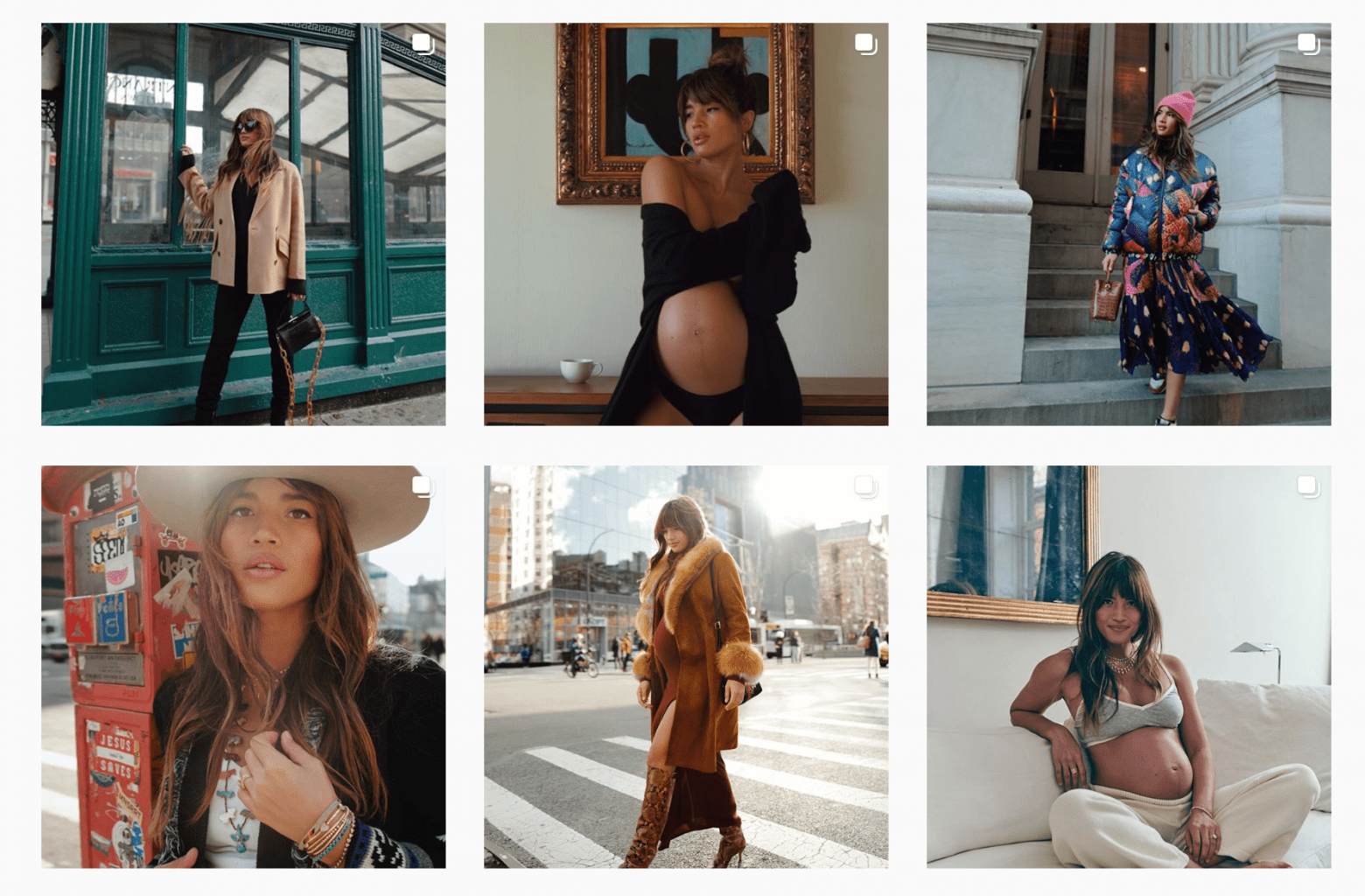 Actualmente con varios meses de embarazo, su estilo no a cambiado y ha seguido luciendo preciosos outfits con telas más fluidas, vestidos y abrigos envolventes que puedes encontrar en su cuenta de Instagram.