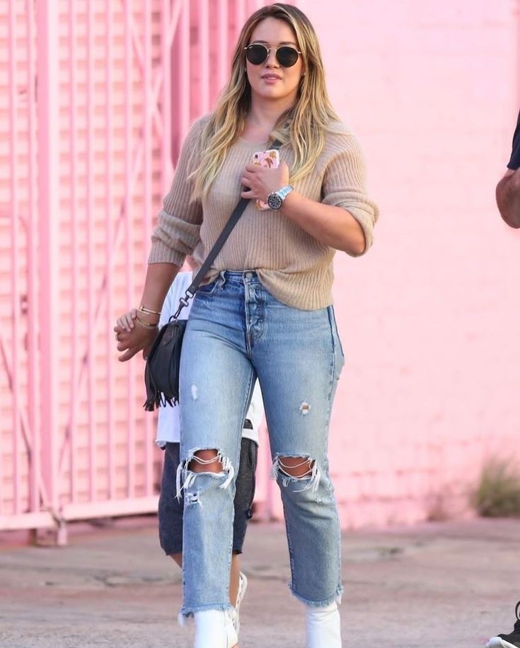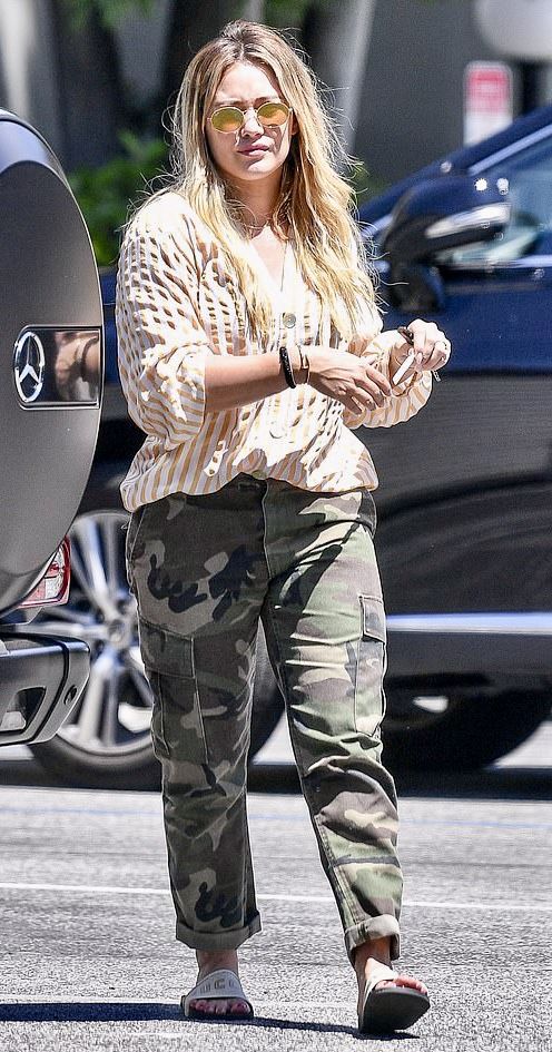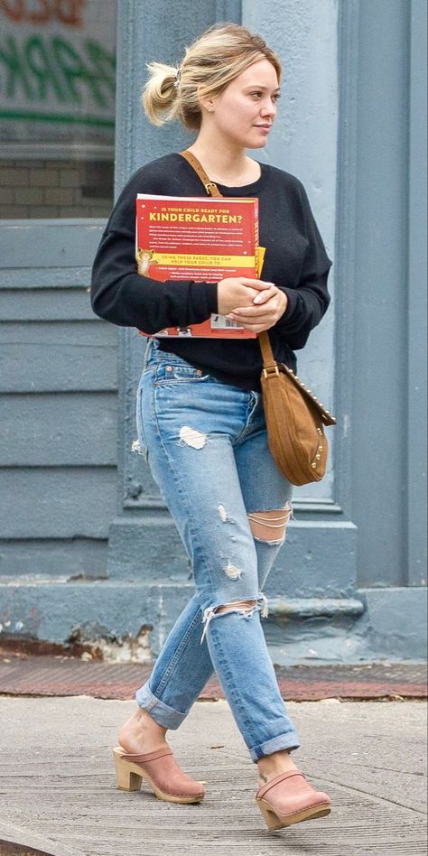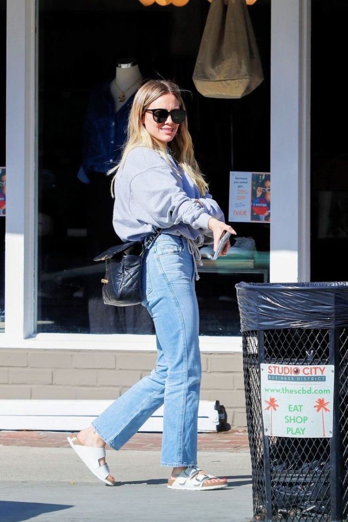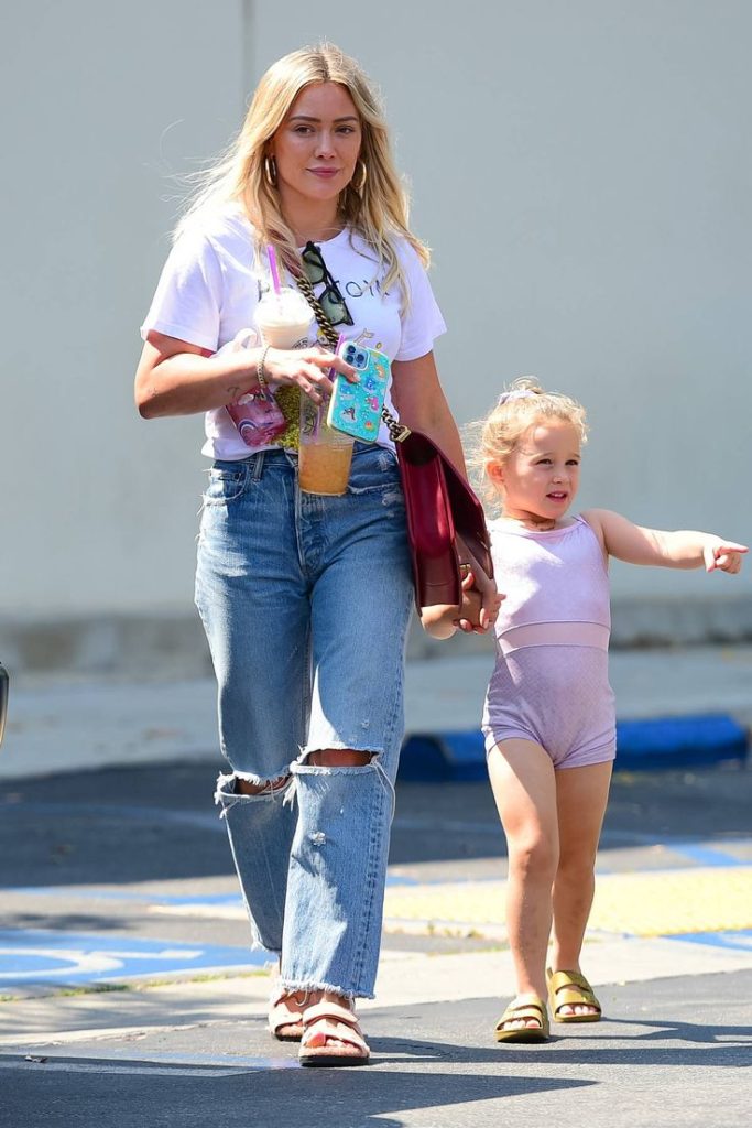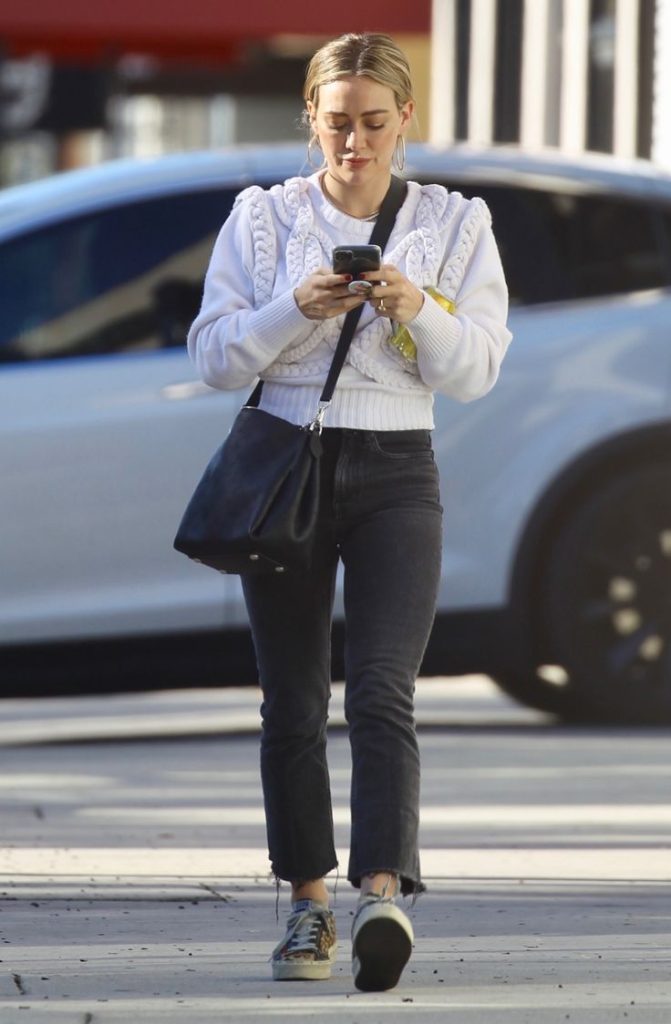 Como mamá, actriz y empresaria, Hilary apuesta por outfits prácticos que le permitan moverse con libertad sin perder el estilo. Camisetas de algodón, sweaters oversized, zapatillas blancas y botas clásicas son algunos de sus básicos favoritos.