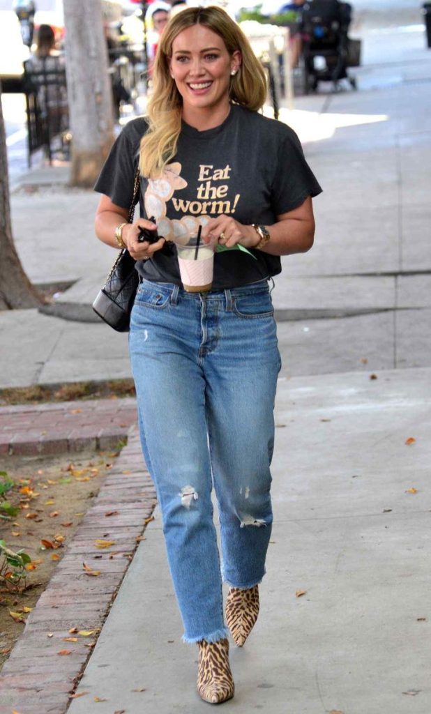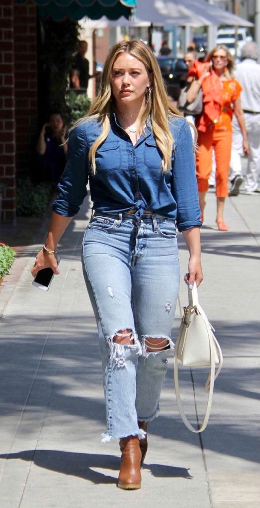 Si algo define el estilo de Hilary es su amor por los jeans. Desde los clásicos skinny hasta los relajados boyfriend o los mom jeans, la actriz sabe cómo sacarles el máximo provecho. Ya sea combinándolos con camisetas básicas para un look effortless o con blazers para un toque más sofisticado, los jeans son la base de su armario.