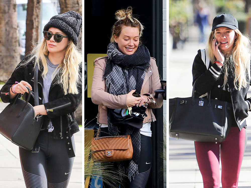 Ningún look de Hilary está completo sin un buen bolso. Su colección incluye desde modelos clásicos en tonos neutros hasta piezas más llamativas que aportan personalidad. Los bolsos grandes, ideales para su ajetreado estilo de vida, son sus favoritos, aunque también opta por diseños más pequeños y estructurados para ocasiones especiales.