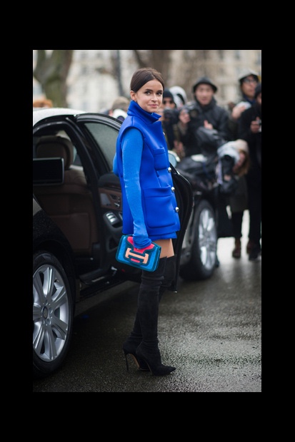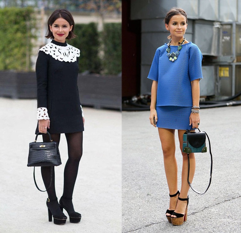 Con sólo 1.50m de estatura, se ha convertido en una de las chicas más admiradas y seguidas por sus fabulosos outfits. Se arriesga a todo y es capaz de combinar “clásicas formas que funcionan” con accesorios llamativos o colores estridentes. Sus imprescindibles tacos XL son parte del día a día de sus looks, donde incluso incorpora botas sobre la rodilla con absoluto acierto rompiendo el mito que este tipo de zapatos están reservados exclusivamente para mujeres más altas.