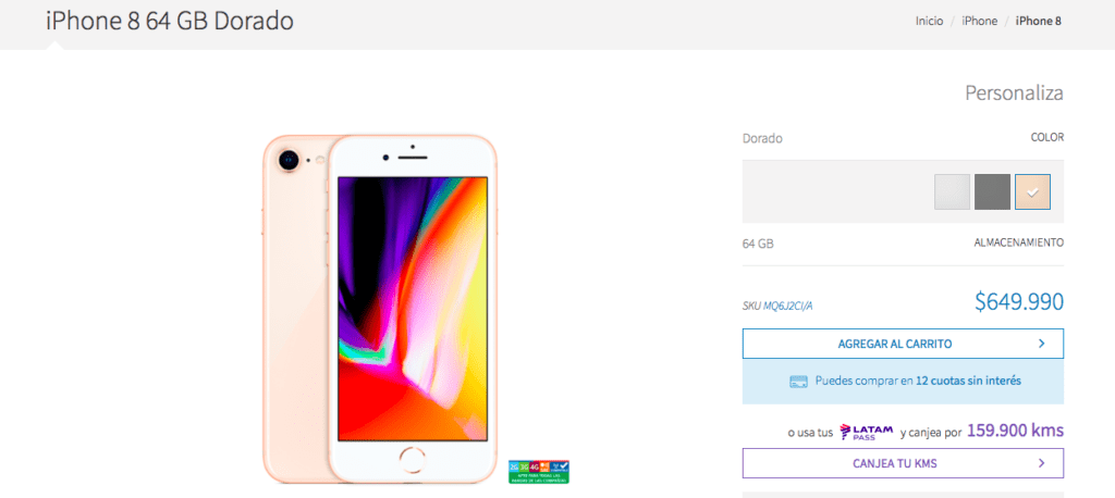 Precio referencial iPhone 8 64 GB $649.990