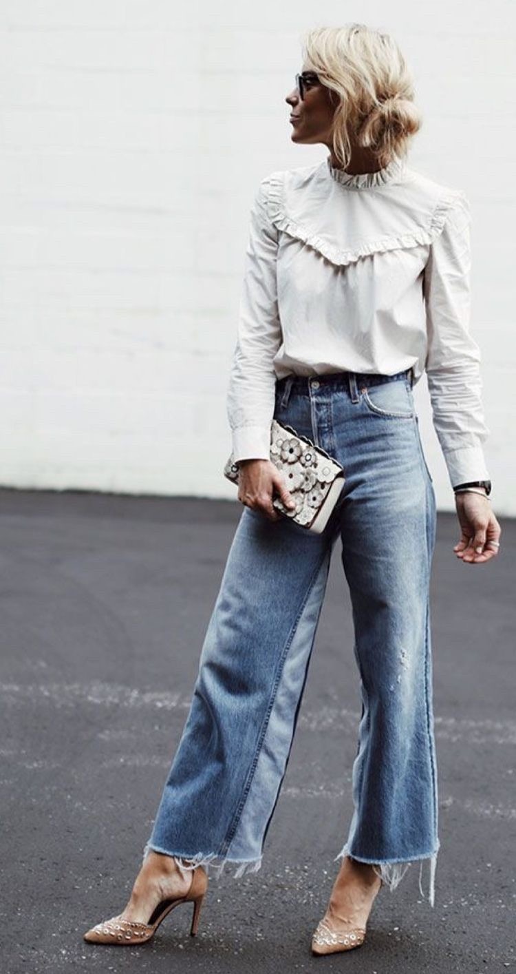 Sin duda una combinación atemporal y maravillosa para todas las edades: Larga vida a la blusa blanca y jeans.