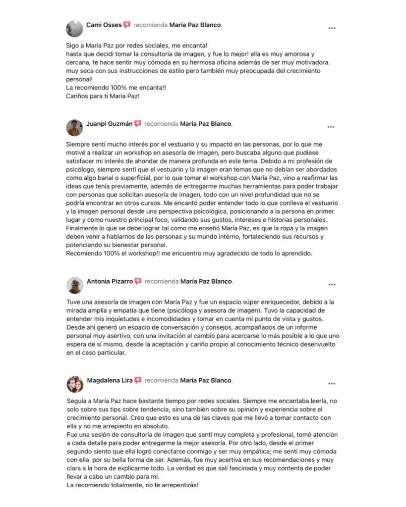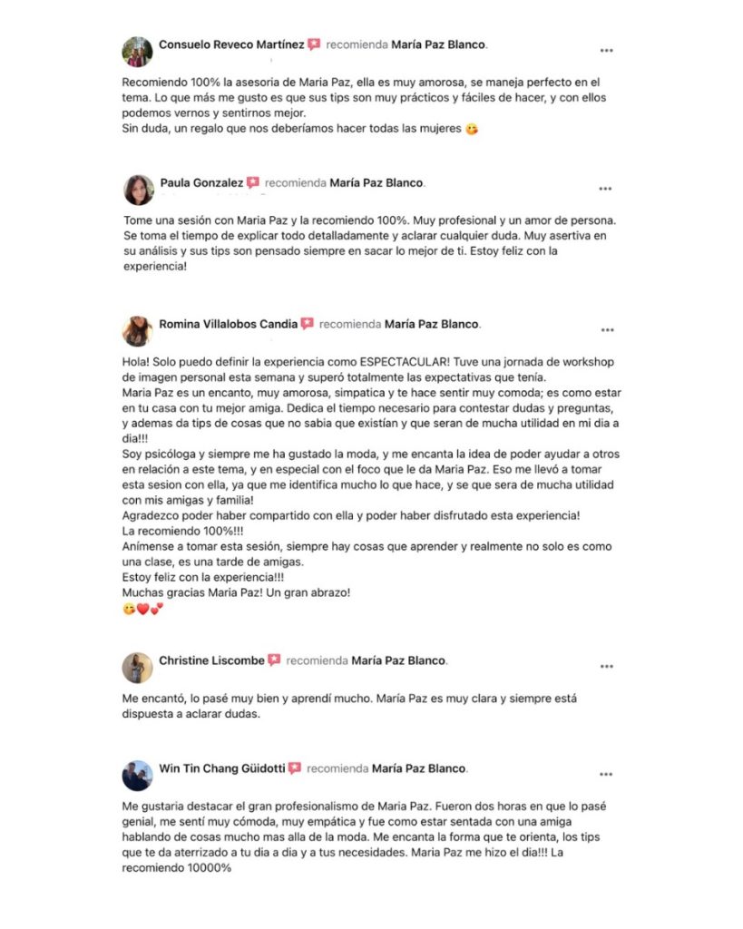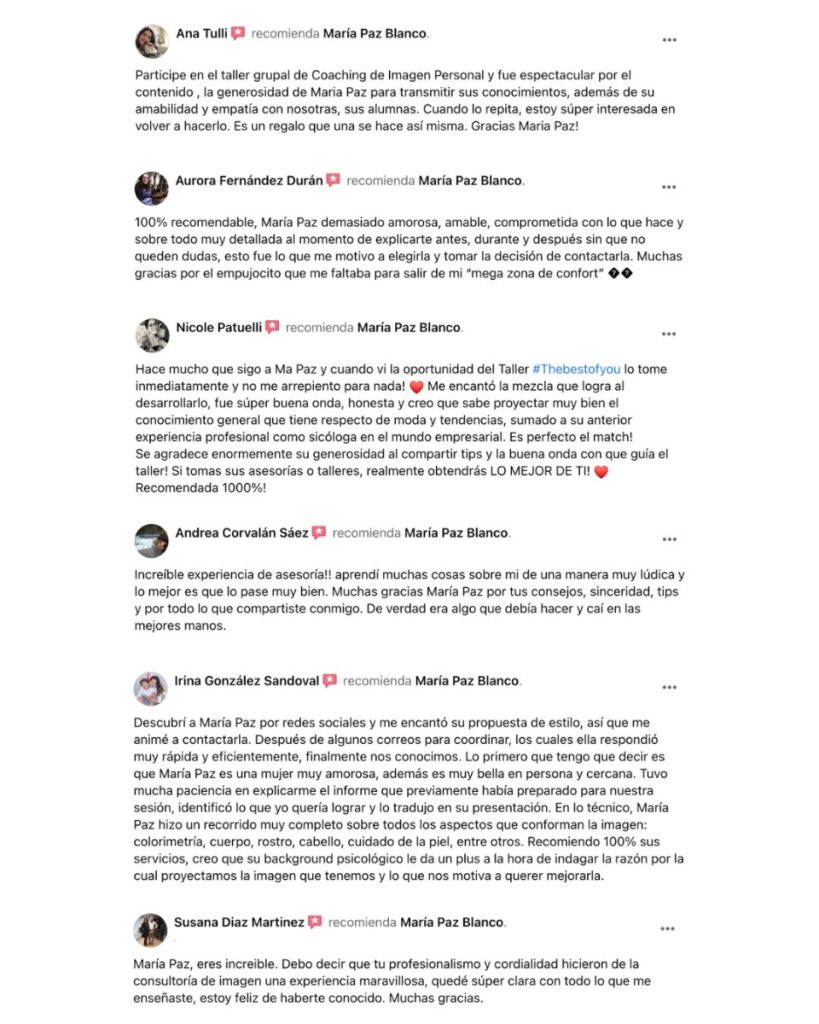 CONOCE AQUÍ ALGUNOS DE LOS TESTIMONIOS DE SUS SERVICIOS DE COACHING DE IMAGEN