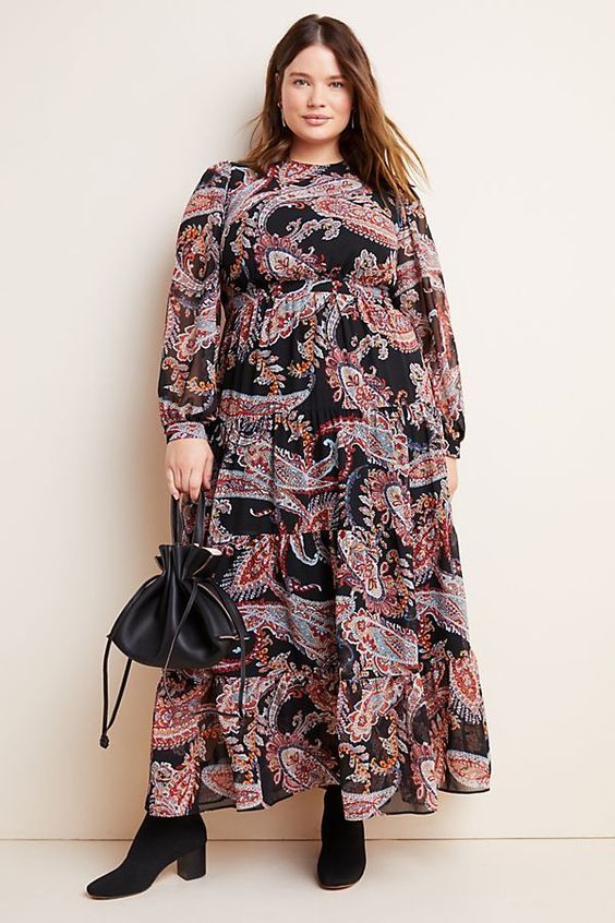 Los vestidos largos estampados con flores o motivos paisley son una seña de identidad del estilo boho en invierno o durante todo el año. Y una carta muy práctica que resolverá tu look de pies a cabeza al instante.