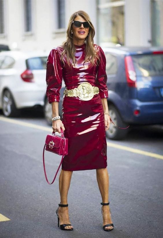 Sexy, sexy, sexy… los vestidos de vinilo o látex son una versión de la “gatúbela moderna”. La verdad no lo recomiendo porque no es tan favorecedor,a menos que seas muy delgada. Es una tela rígida, incómoda y calurosa… Así que la verdad, mejor sigamos viendo estos vestidos en fotos o las revistas. Es mucho mejor incorporarlo en zapatos, ya que son más “democráticos”, sí, todas podemos usarlos, sin duda destacarán tu look y son más fáciles de llevar.