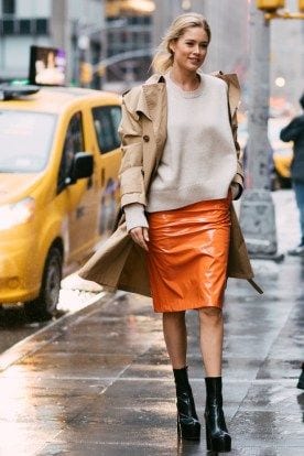 Pero las minis no son lo único, también puedes atreverte con una falda hasta la rodilla. Mézclalas con prendas neutras y con camisas para un toque sexy-chic. Y ¡ojo! que el negro no es el único color para llevar este tendencia: