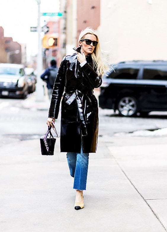 El 2017 fue el gran retorno de las prendas de vinilo o de charol y este 2018 continuará su reinado. No hay fashionista que no se haya tentado a llevar alguna pieza de este material brillante. Es sexy, audaz y denota personalidad. Es atrevido y muy llamativo, pero puedes incorporarlo fácilmente en tenidas casuales y otras más glamorosas. Y lo mejor… no solamente es para veinteañeras!!!