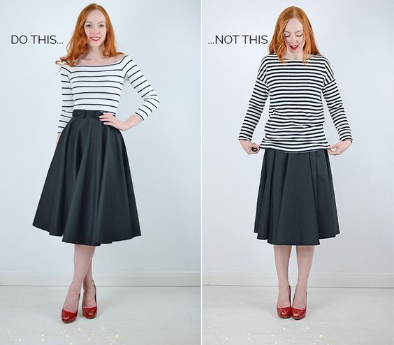Recuerda siempre llevar el top por dentro para potenciar tu cintura y dar armonía a la silueta.