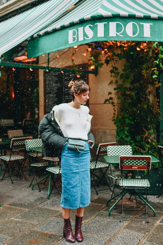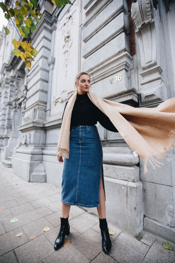 La falda midi de jeans, llega esta otoño-invierno para demostrar su increíble versatilidad y capacidad de reinventarse según el estilo que le quieras dar al look. Las hay en distintos modelos, cortes y tonos, pero que tú elijas la que mejor se ajusta a tu silueta. Si no sabes bien cómo combinarla durante los días de frío, estos looks te darán inspiración de sobra.