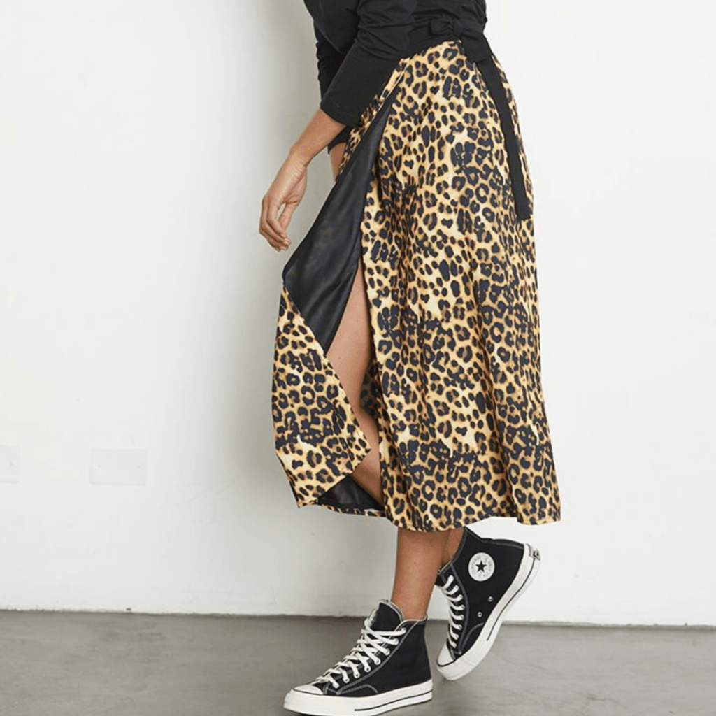 La abertura lateral o frontal de la falda midi estampada es un favorecedor detalle que da movimiento al look y que estiliza la silueta a dejar una parte de la pierna al descubierto. ¡Además es un guiño súper sexy!