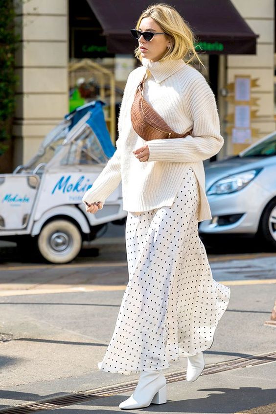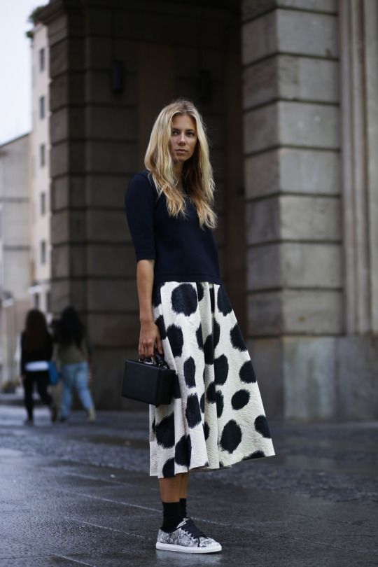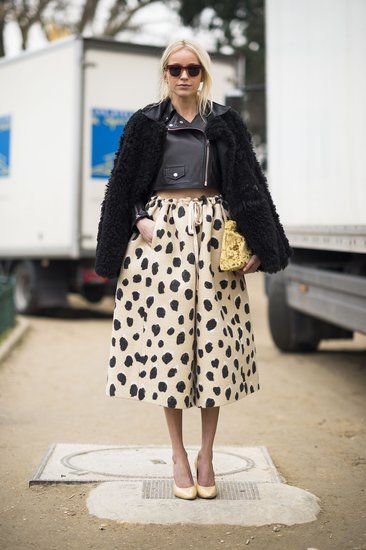 La fiebre por los lunares continúa reinando este otoño-invierno. Si durante la primavera-verano tiñó vestidos y faldas ligeras, esta temporada demuestra que sigue vigente con faldas un poco más gruesas, pero igualmente coquetas. ¿Sus compañeros perfectos? Los sweaters oversize y las camisetas básicas.