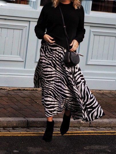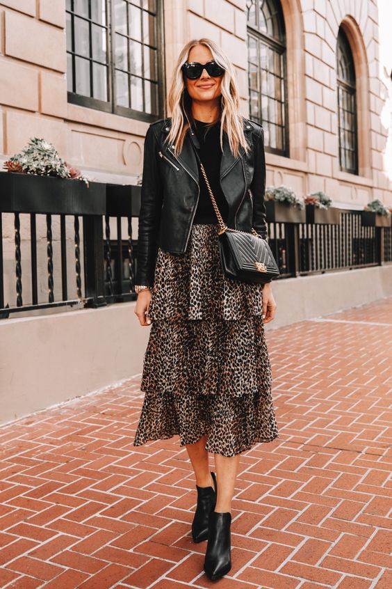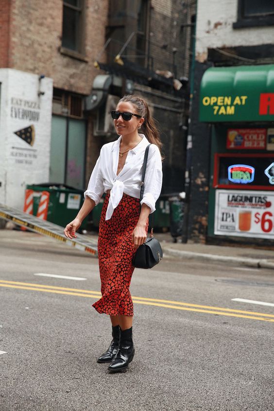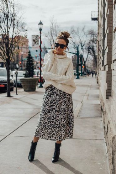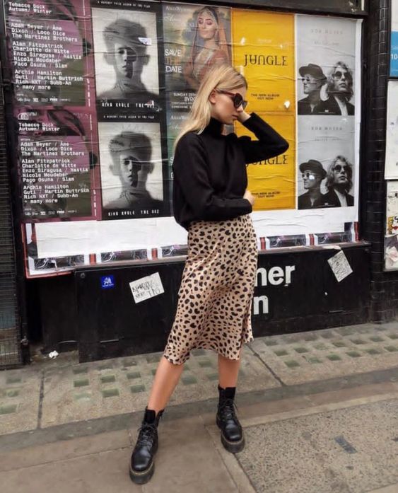 Las botas de caña alta y los botines de inspiración grunge son los compañeros ideal para llevar una falda midi estampada en invierno, y no sufrir con el frío.