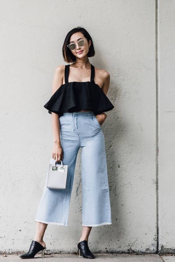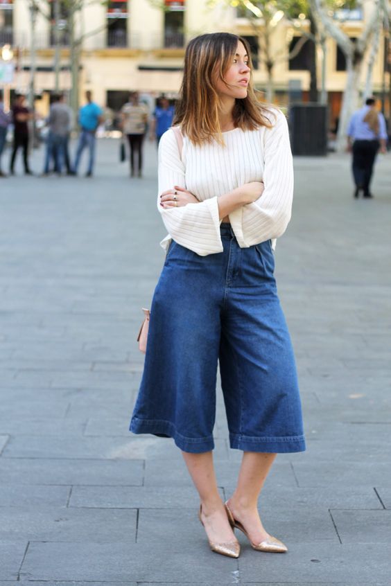 Para dejar un poquito más de piel al descubierto, los pantalones culotte son una opción perfecta, y que además prometen ser una de las tendencias más cool de esta primavera. Perfectos con zapatos planos, tacones o botines, este será tu jeans básico para los días de transición.