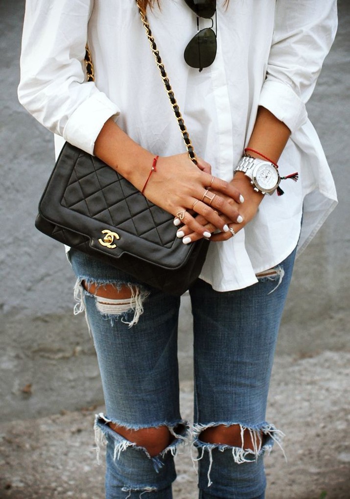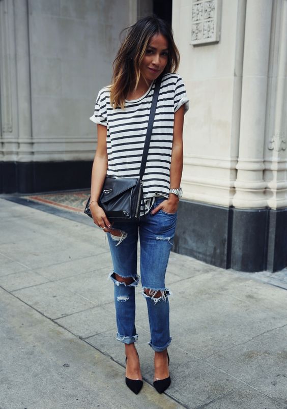 Los jeans rasgados quedan bien absolutamente con TODO lo que hay en tu clóset, ¡has la prueba! Nos encanta cómo quedan con prendas básicas, desde la clásica camiseta blanca o rayada, hasta polerones y sweaters.