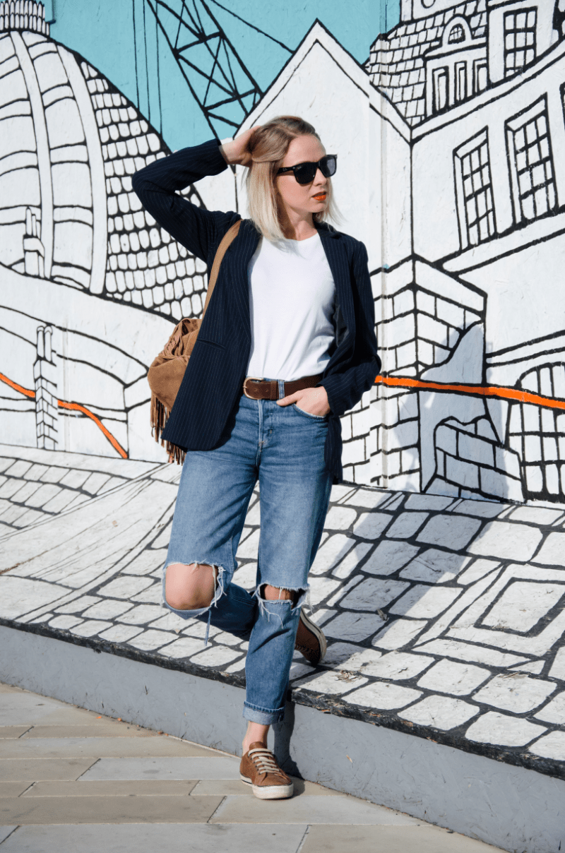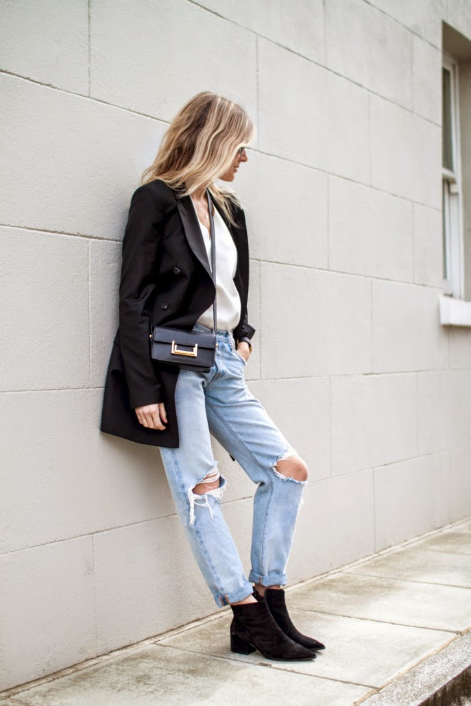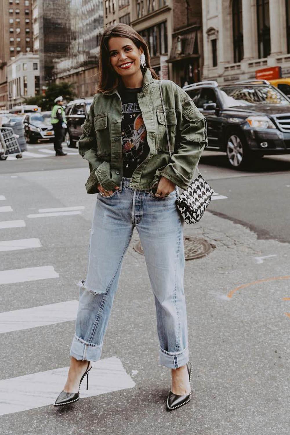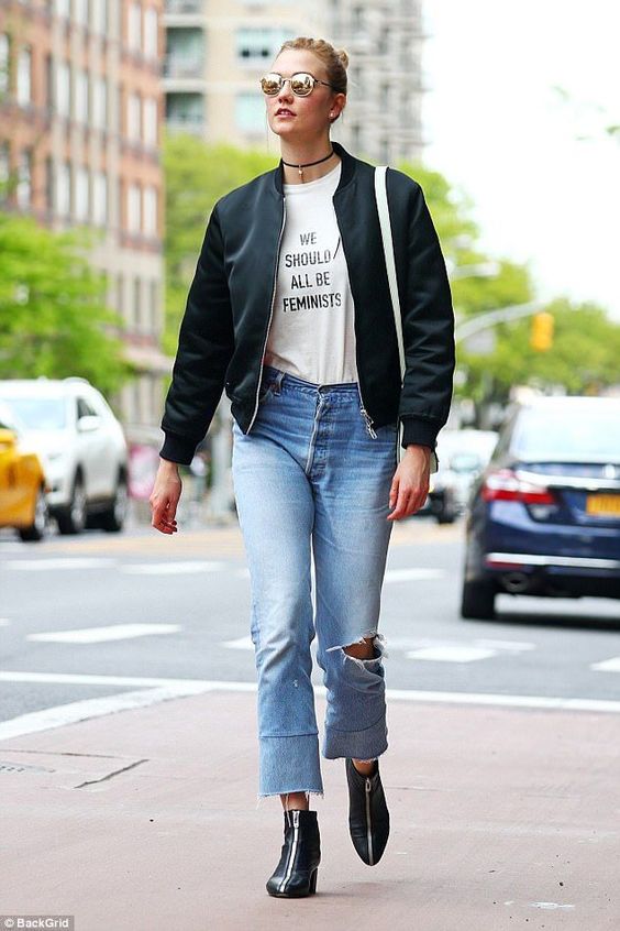 Es probablemente la forma más cool de combinar tus jeans rasgados. Poleras con estampados gráficos, biker leather jackets y blazers, tres prendas que hacen un match perfecto con los ripped jeans, para crear outfits que derrochan personalidad.