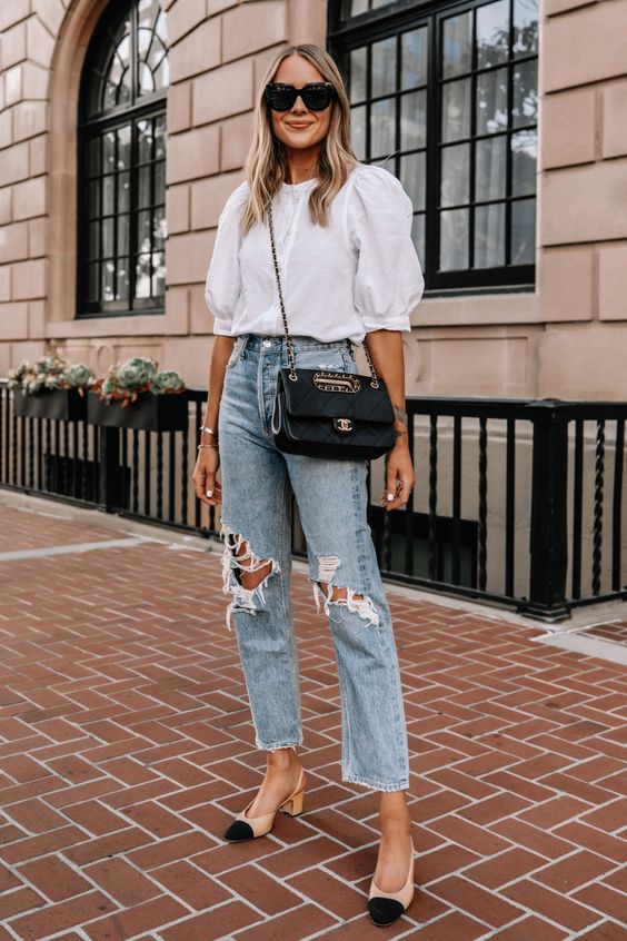 ¿Crees que llevar unos jeans rasgados y verte arreglada es una misión imposible? ¡Claro que no! De hecho, ‘elevar’ la personalidad casual de los jeans con otras prendas y complementos como stilettos, clutchs, blazers y joyas, es una de sus versiones más cool de los ripped jeans.