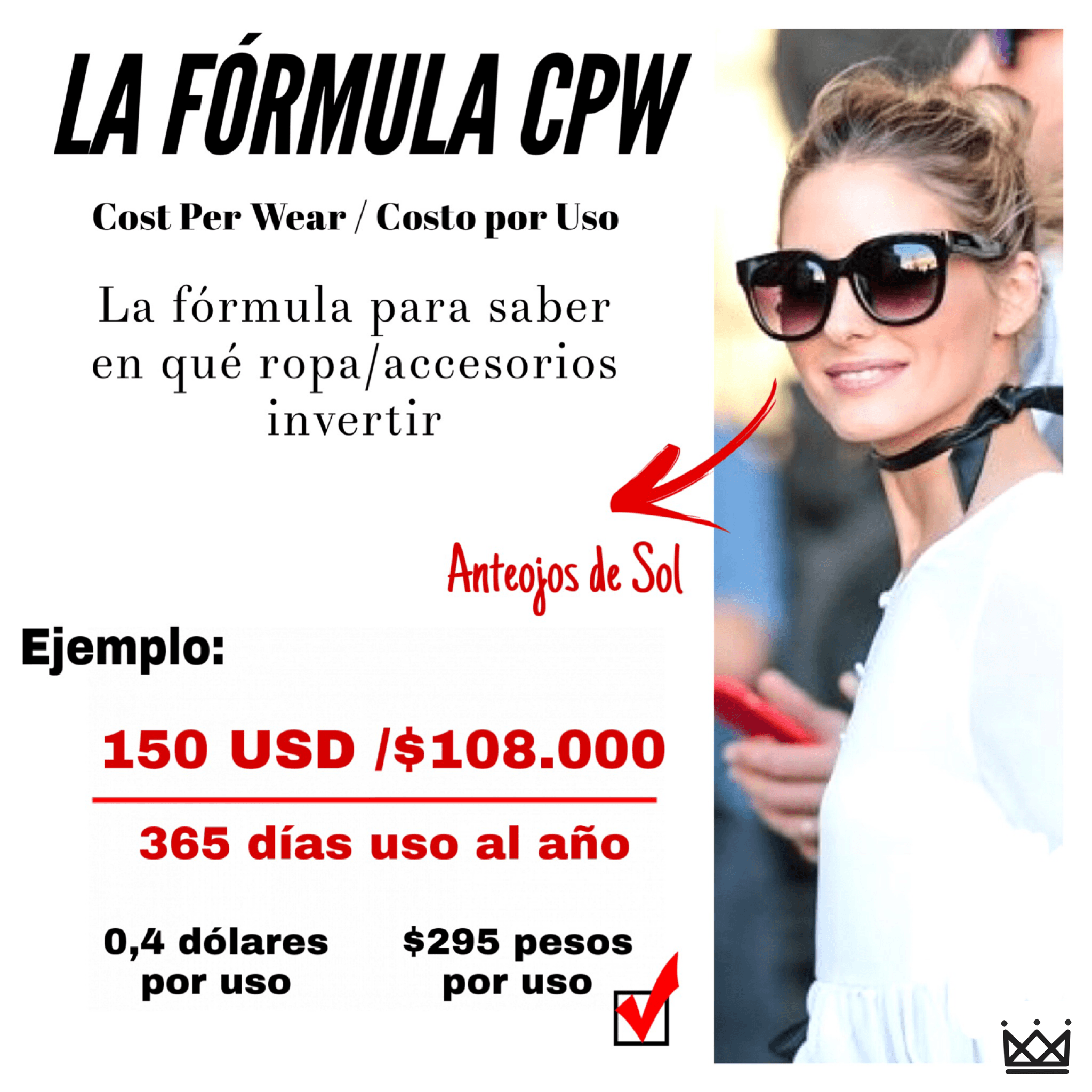El nombre de esta fórmula es “Cost per Wear” o no español “Costo por Uso.