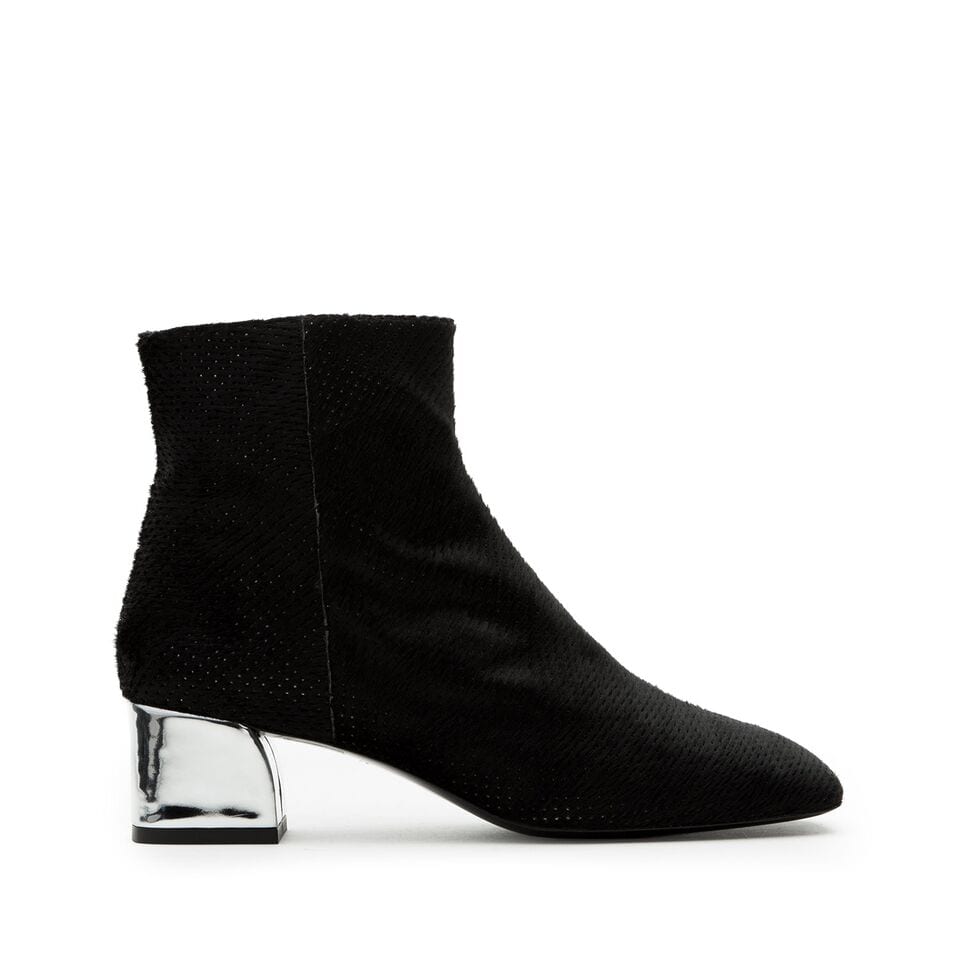 Para cerrar la línea New Retro Castañer presenta la Fur Family que destaca por los acabados lisos y brillantes, tanto el botín Cavallino como los modelos de Metal Pony, con tacón cuadrado y plateado.