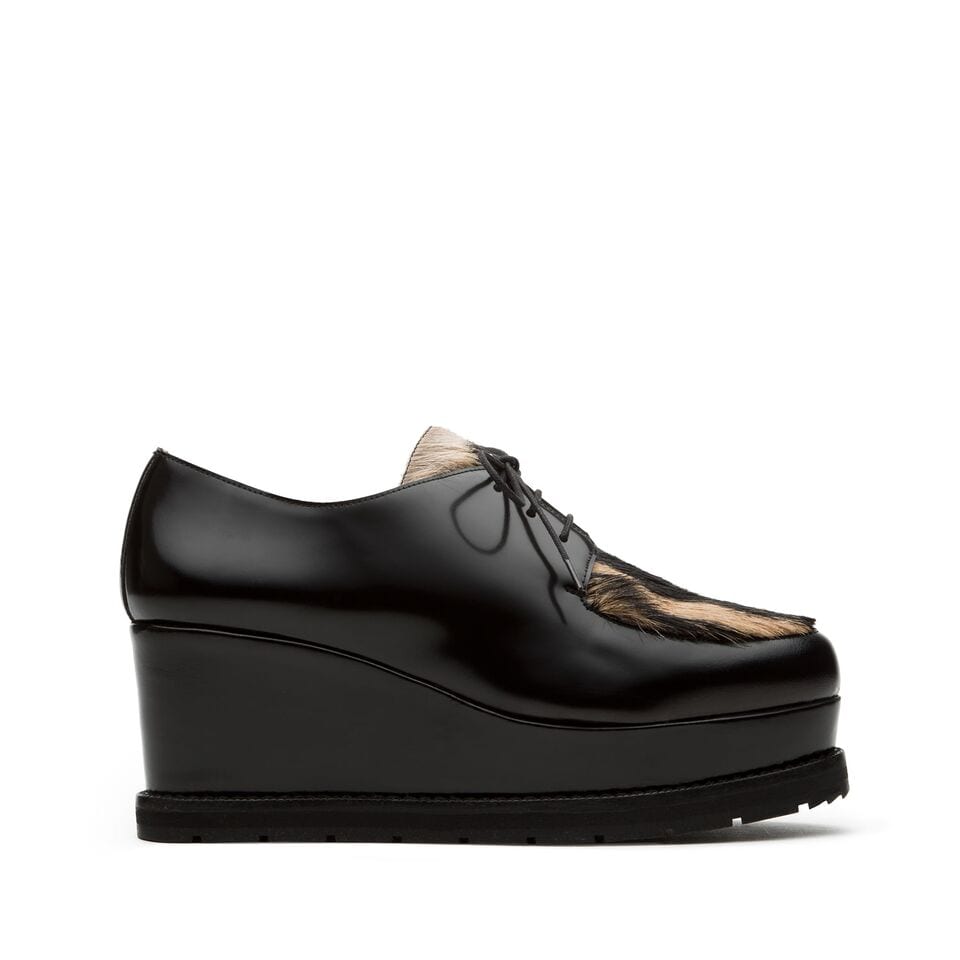 El modelo Gazelle, el mocasín de cordones, animal fur y tacón de cuña para las más audaces destaca entre los modelos más contemporáneos de esta temporada.