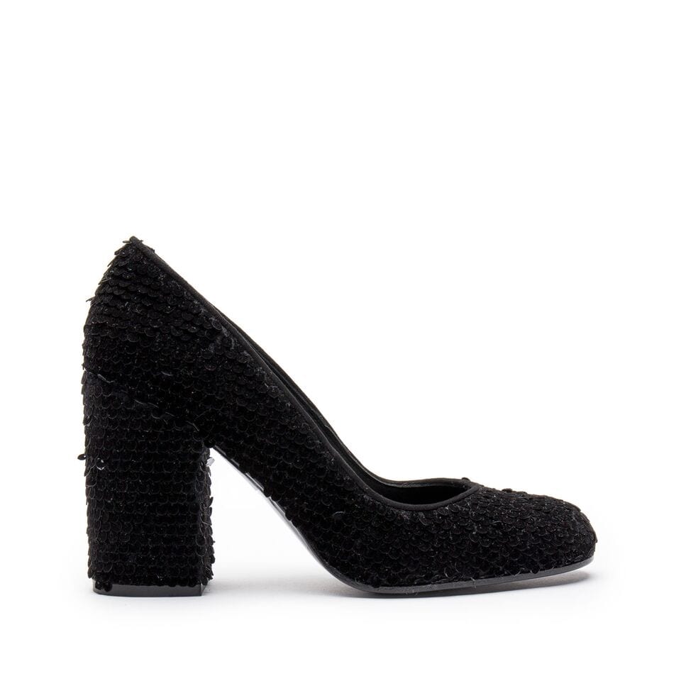 La familia FabricPaillete es la más elegante de esta línea. Sofisticación y feminidad caracterizan al modelo Loren, con una cinta para anudar el zapato al tobillo. El modelo Jimena, disponible en color negro, es un salón estiloso de punta redonda con un tacón grueso y cuadrado, ideal para recrear el estilo Granny y completar un look de noche.