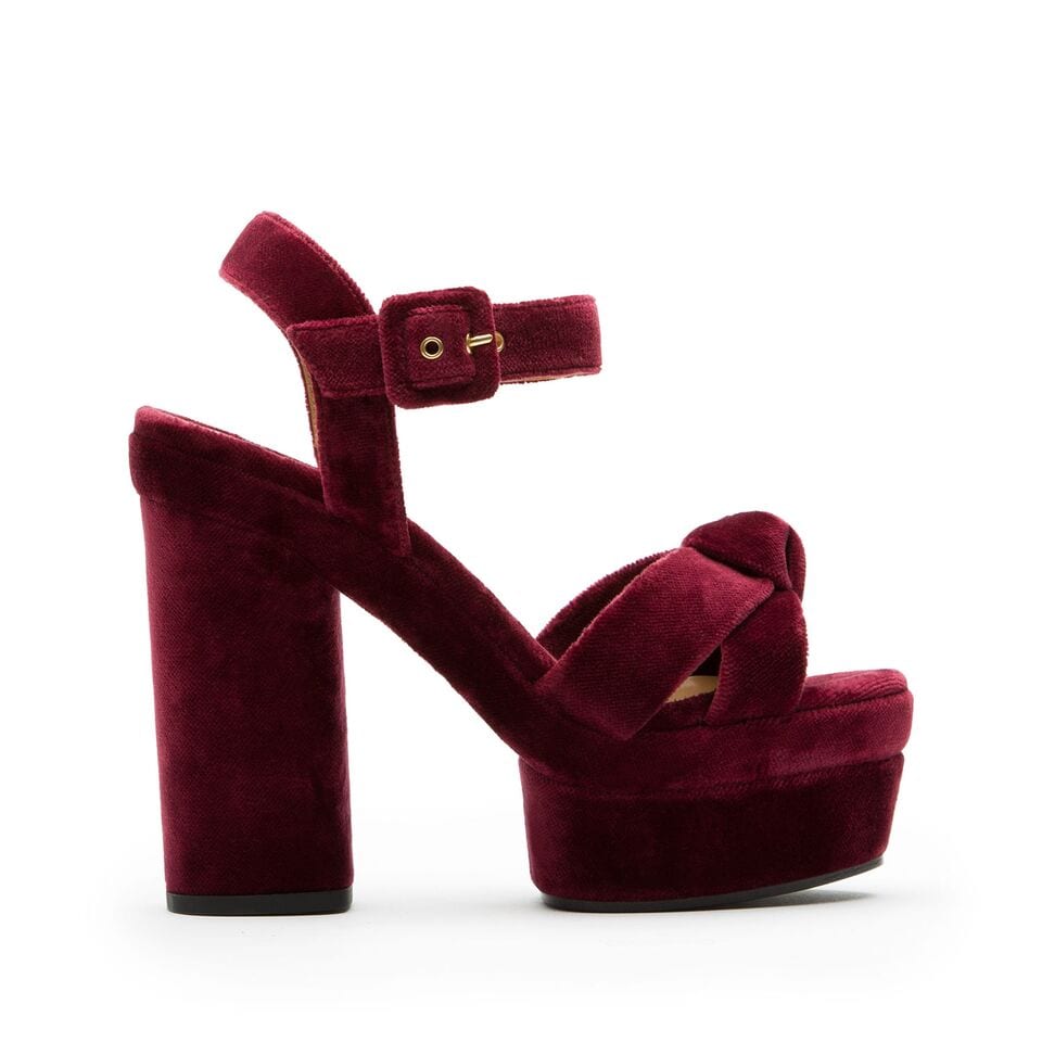 Se hace un hueco importante la familia VelvetDress. El terciopelo, de un delicioso color aubergine es, sin duda, un imprescindible para esta temporada, tanto la versión más atrevida, de tacón grueso alto, como el salón de tacón más bajo, retro y cómodo.
